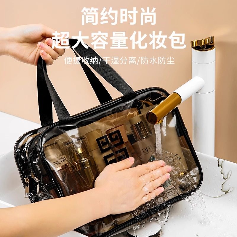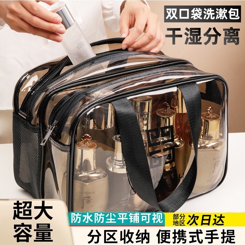 化妆包女便携超火2025防水大容量品收纳袋旅行干湿分离洗漱包透明