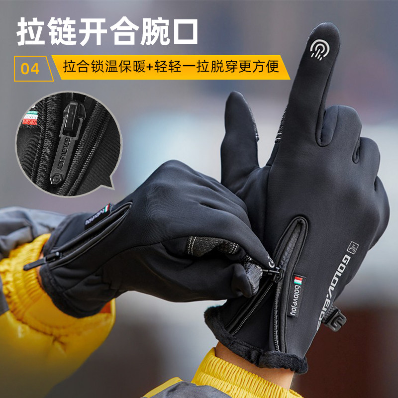 冬季保暖加厚骑行滑雪手套触屏摩托车加绒防水防风寒防滑户外防雨