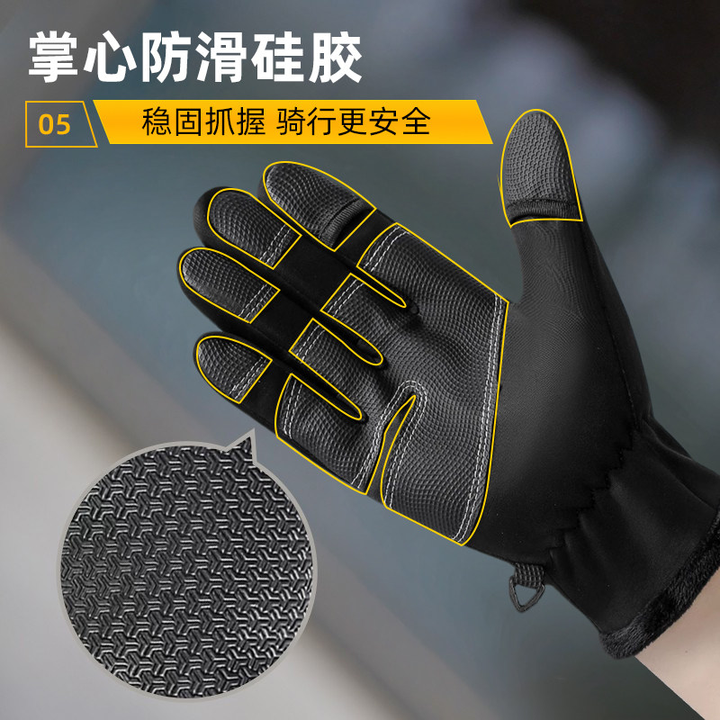 骑行手套男冬季骑手外卖装备电动摩托车露指触屏加绒保暖防水防寒