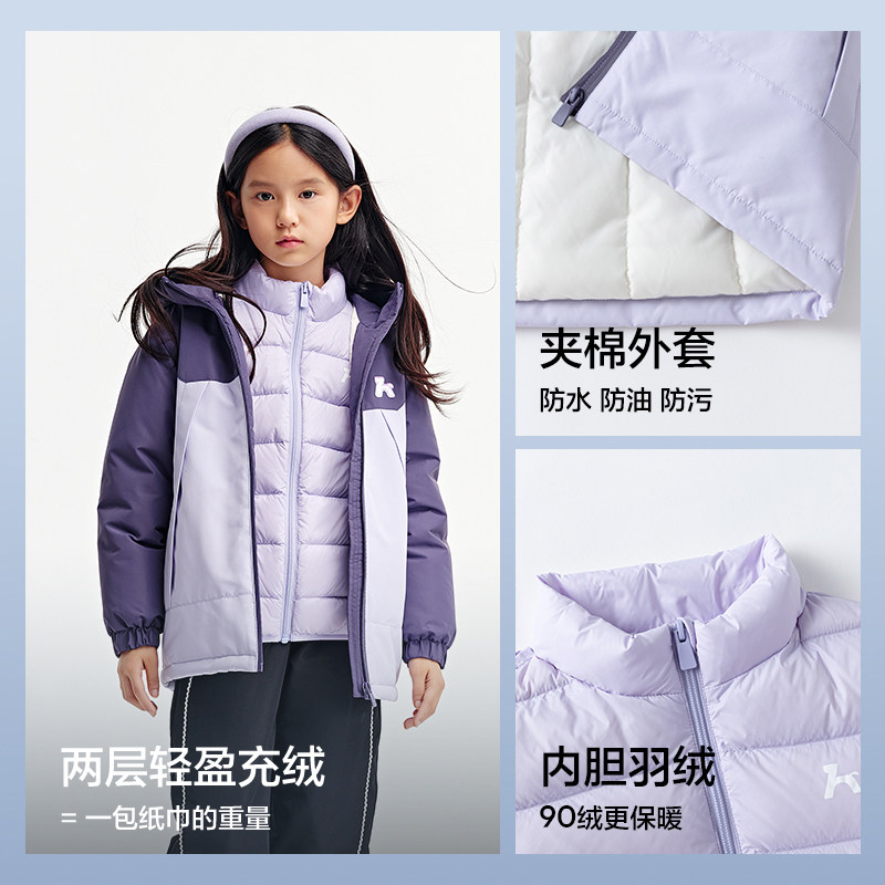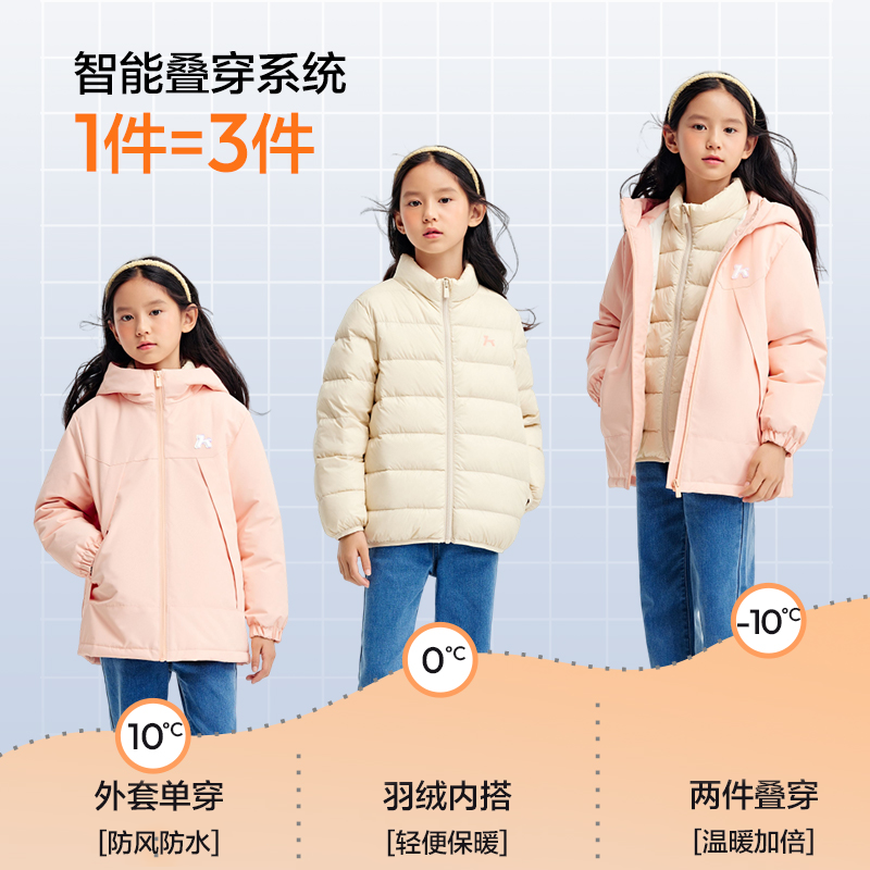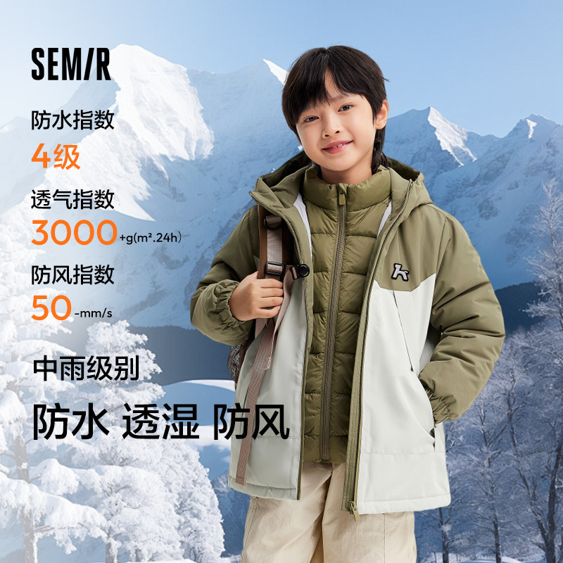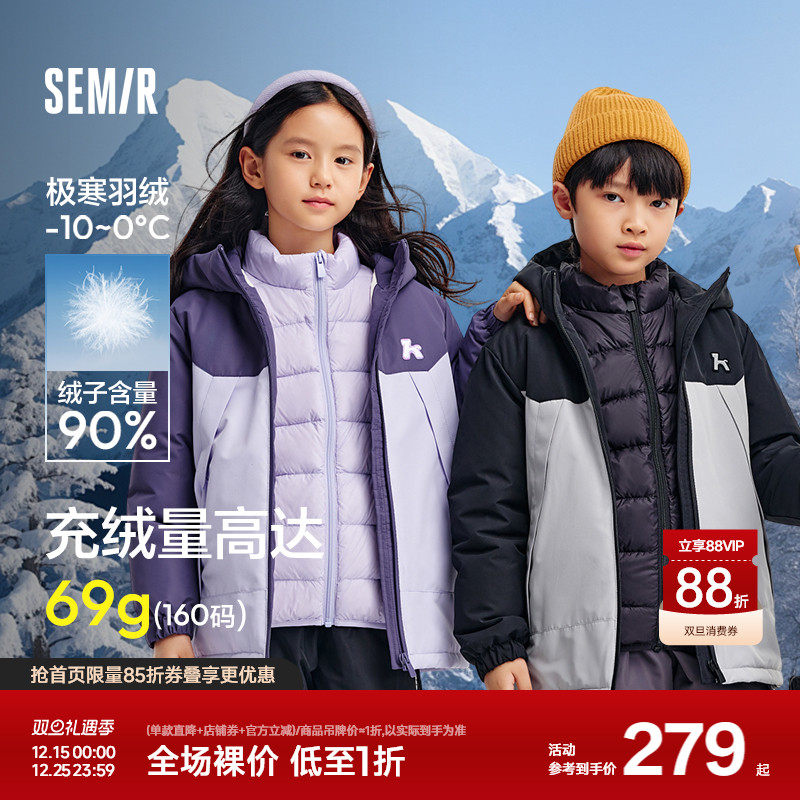 森马儿童羽绒服2024年新款套装三合一中长款加厚外套男童女童冬装