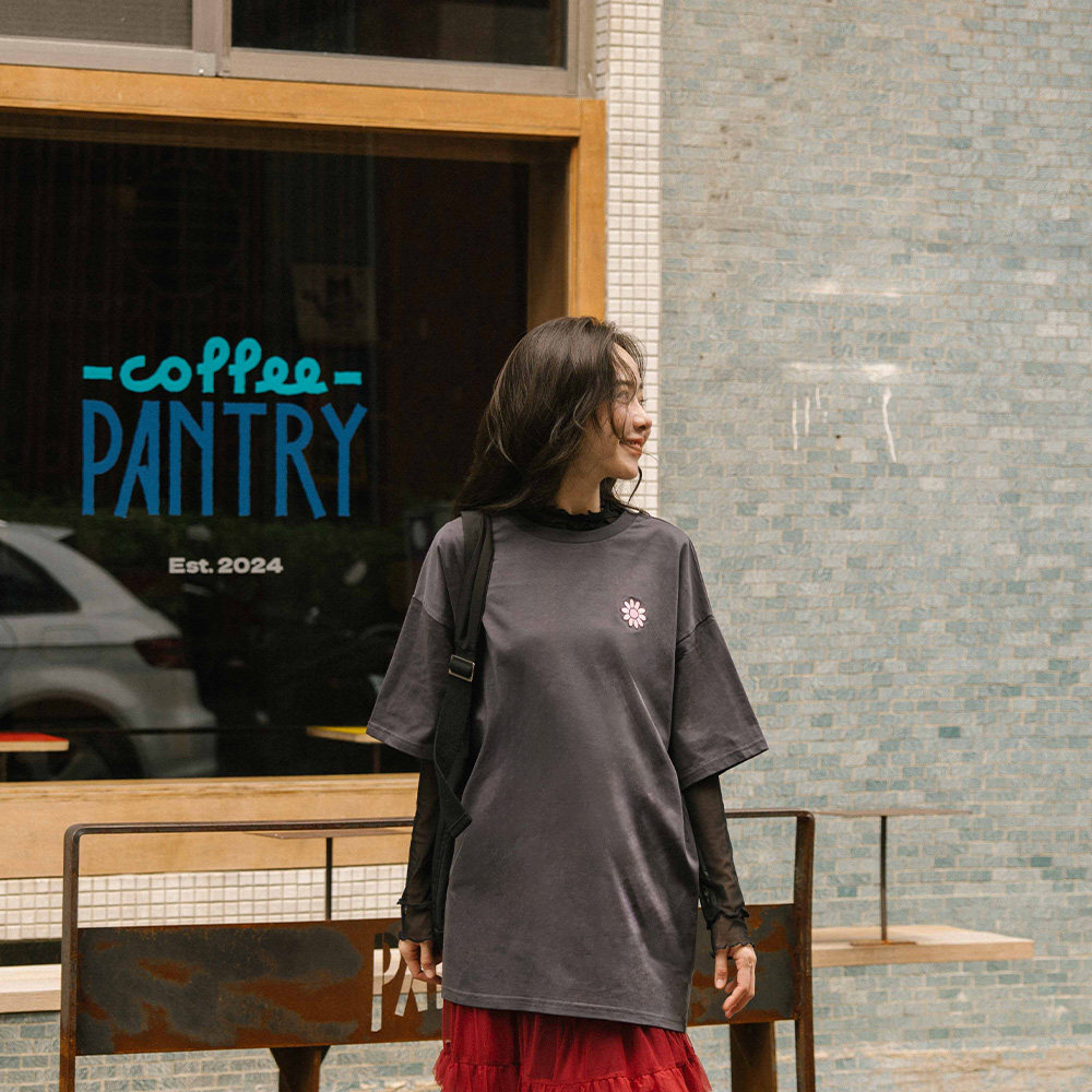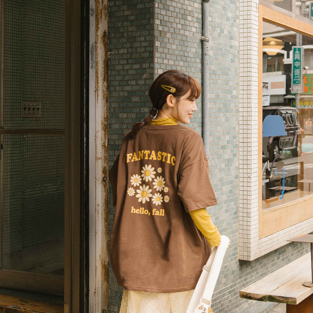 QUEENSHOP 2025秋冬新品女装小雏菊刺绣印图宽版短袖上衣01190298