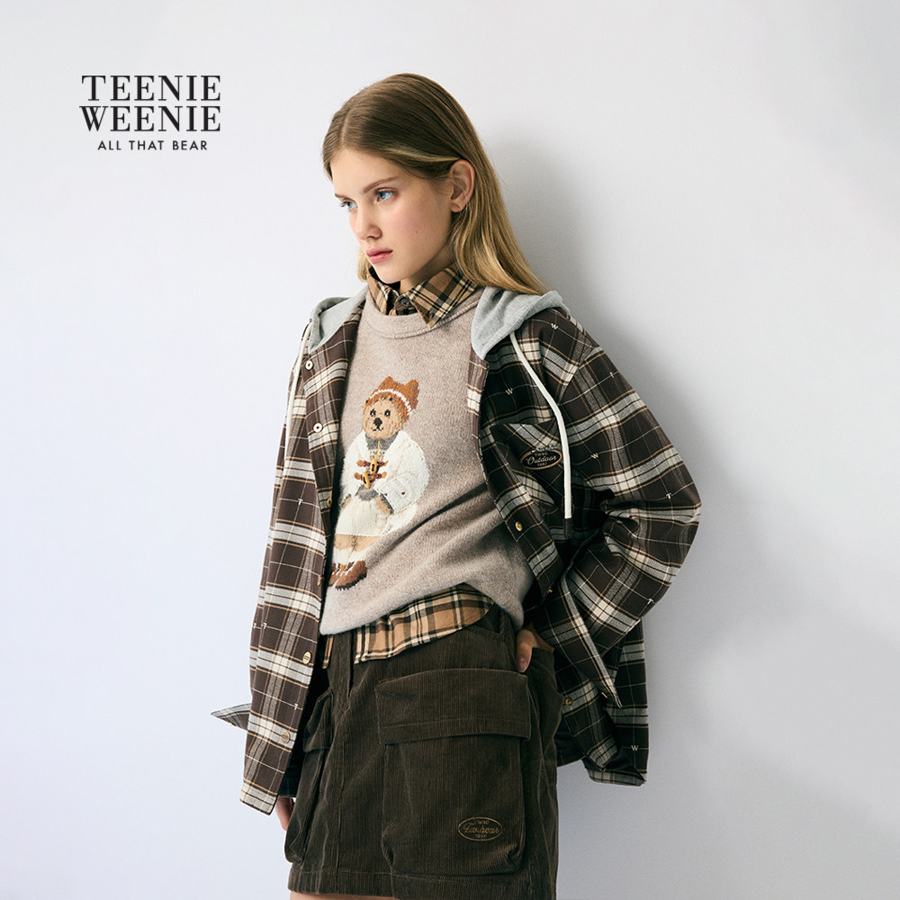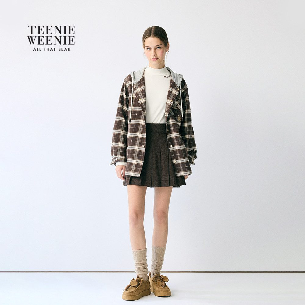 TeenieWeenie小熊女装衬衫2025冬季新款复古时髦格纹连帽舒适外套