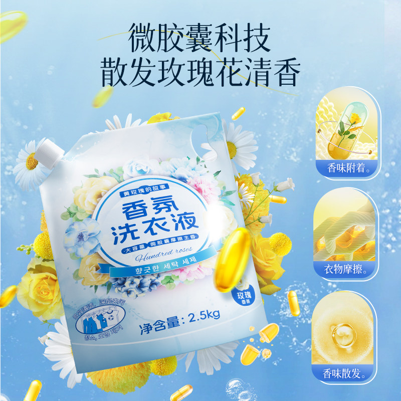 5斤大袋装玫瑰香氛洗衣液去汗渍污渍深层洁净留香洗涤剂年货囤货