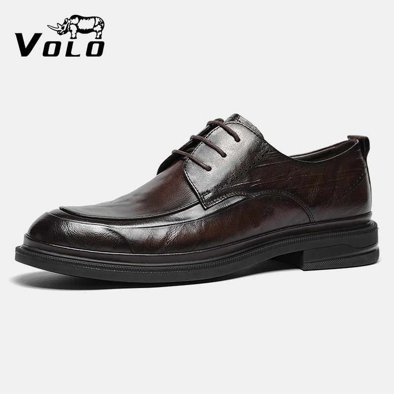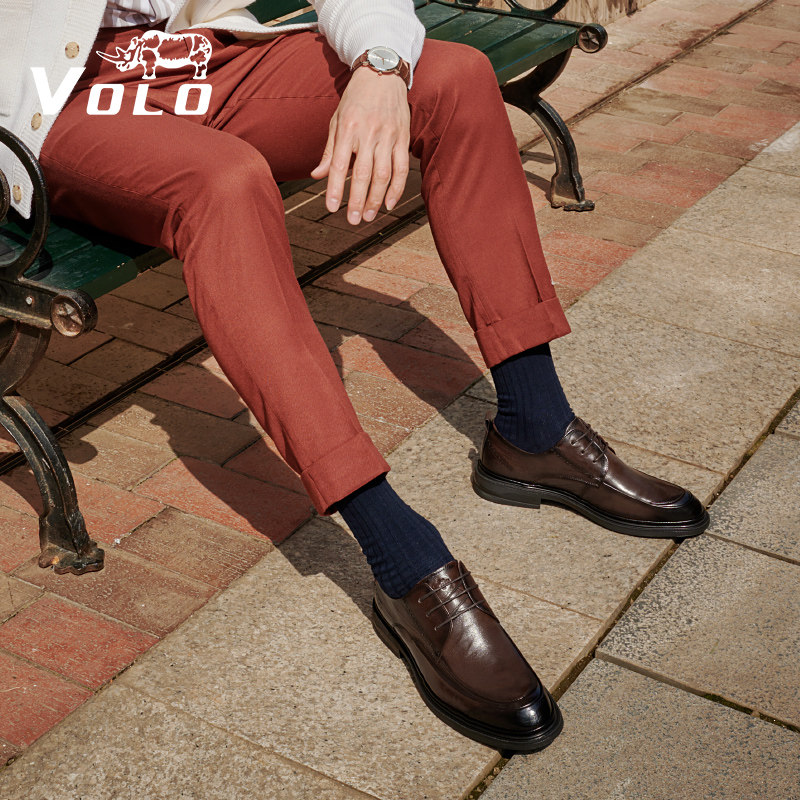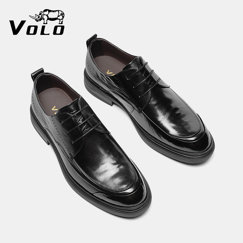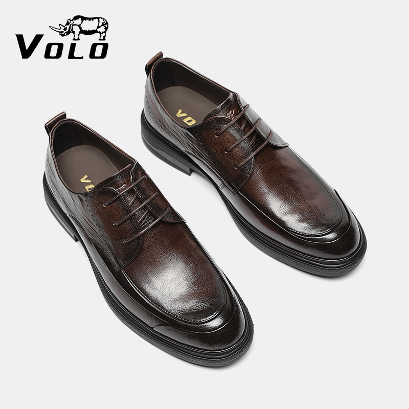 VOLO犀牛男士休闲皮鞋男款商务正装德比鞋真皮高端增高男鞋爸爸鞋