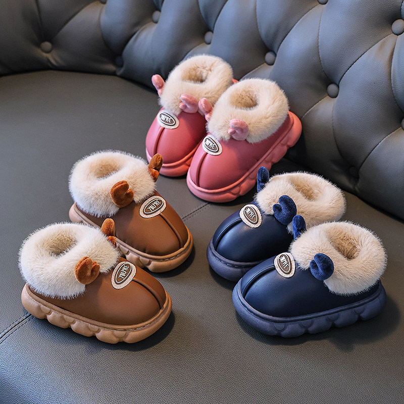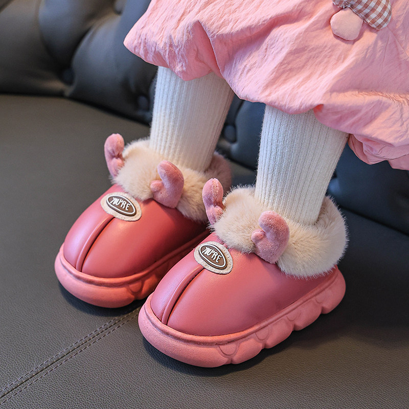 2025冬季新款儿童棉拖鞋男女童卡通居家室内外防滑皮面亲子棉鞋