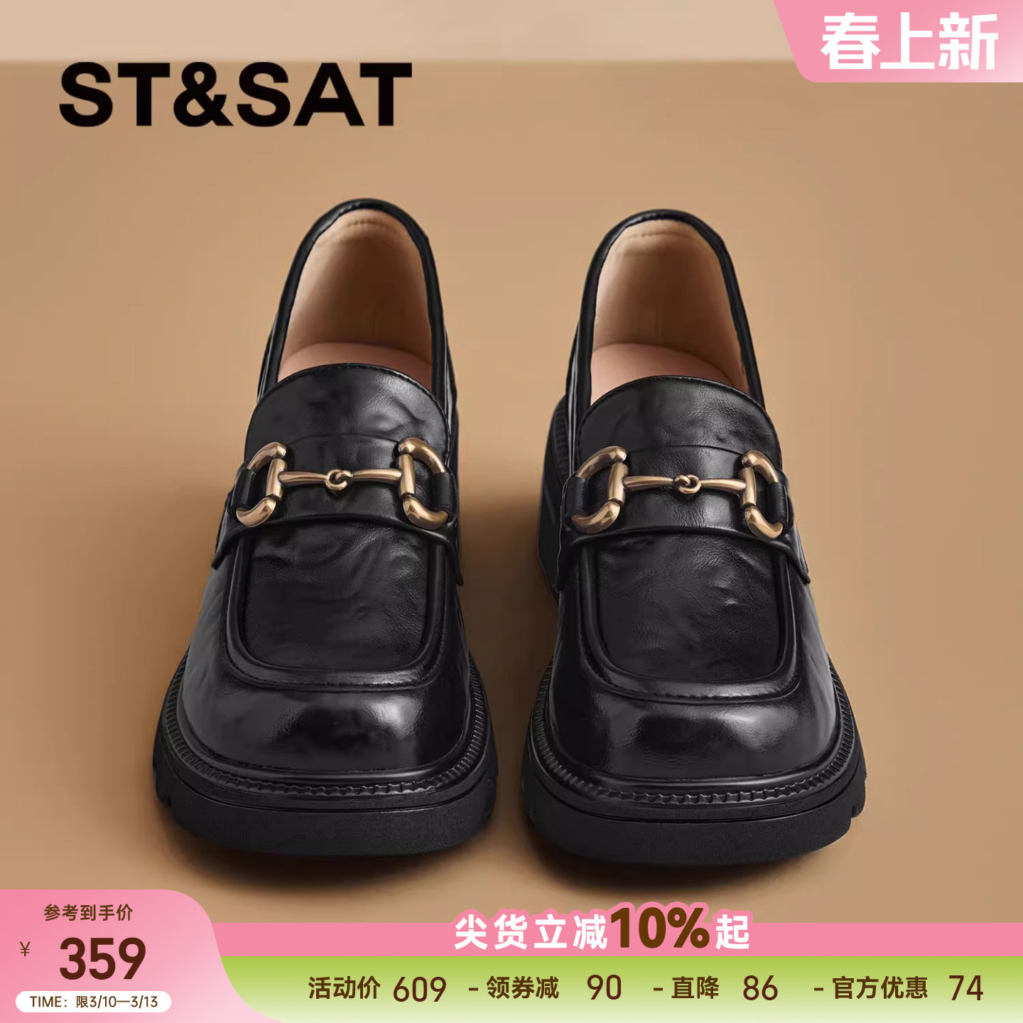 星期六厚底乐福鞋女新款春季女鞋软底不累脚一脚蹬黑色小皮鞋