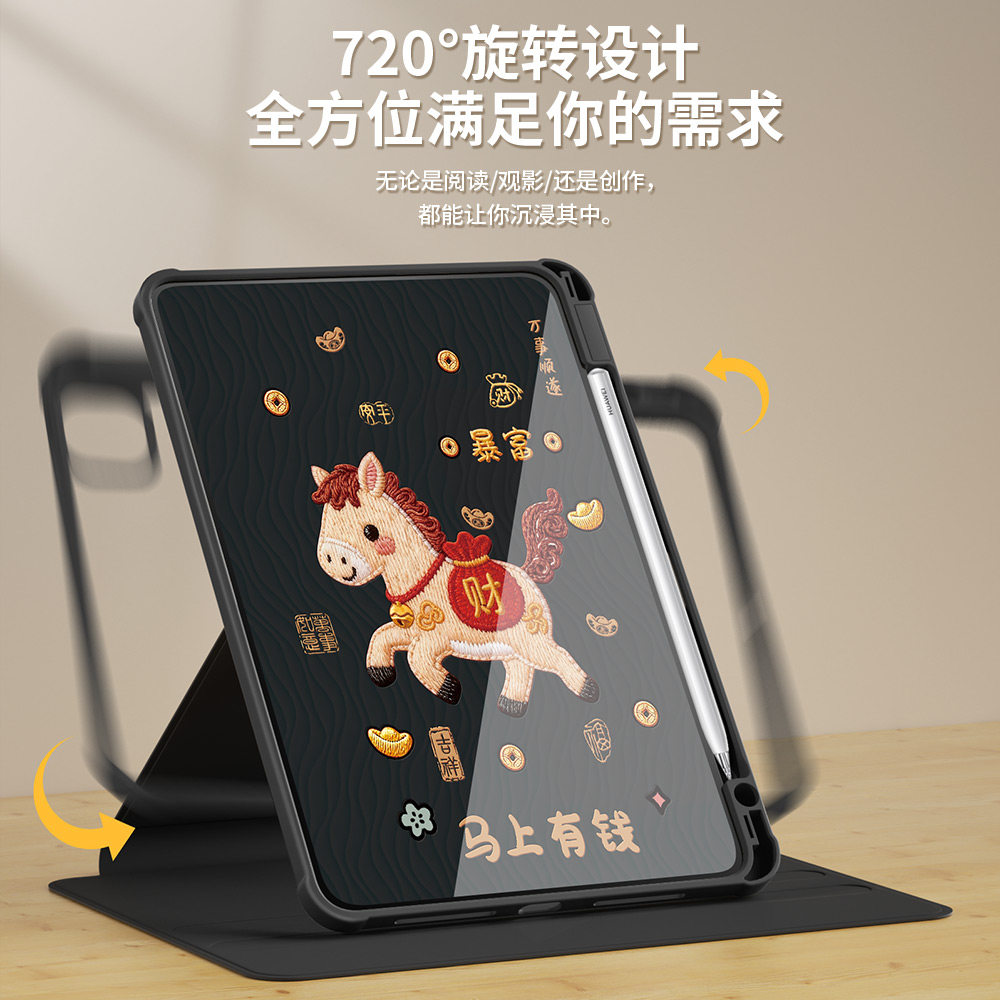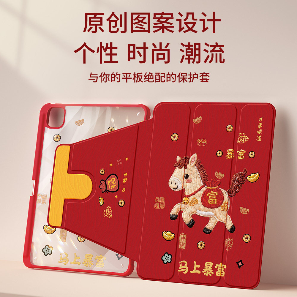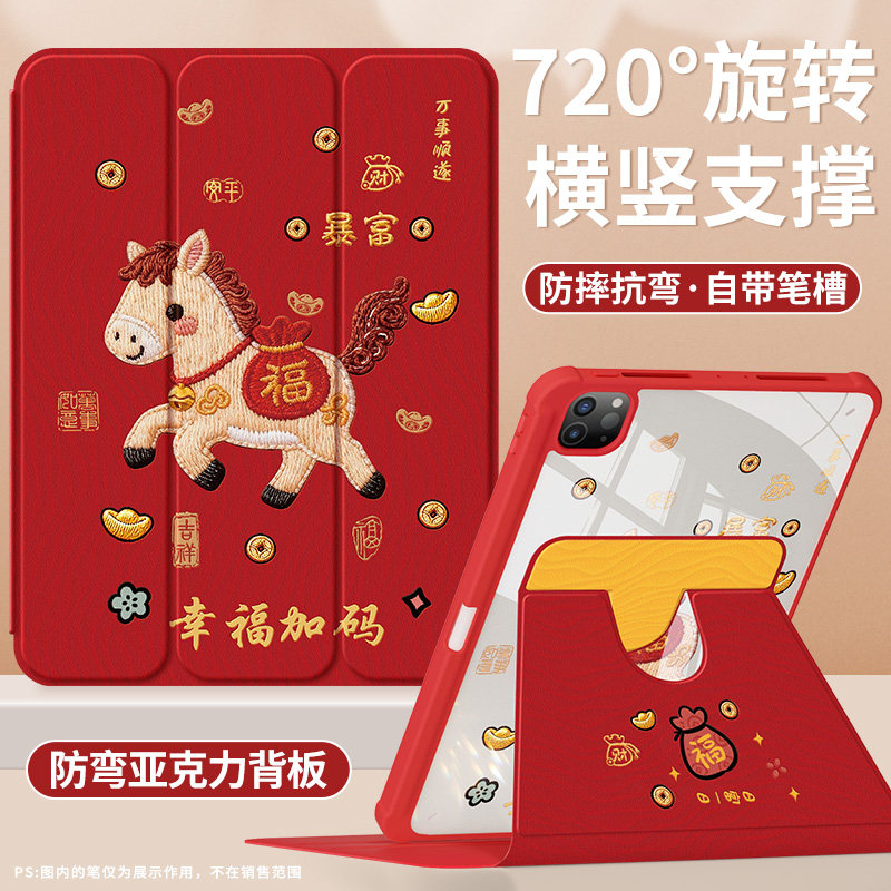 适用ipad11保护壳2025新款ipad10/9代保护套air4/5/3苹果a16马上有钱pro11带笔槽mini6防摔7可爱10.9亚克力红