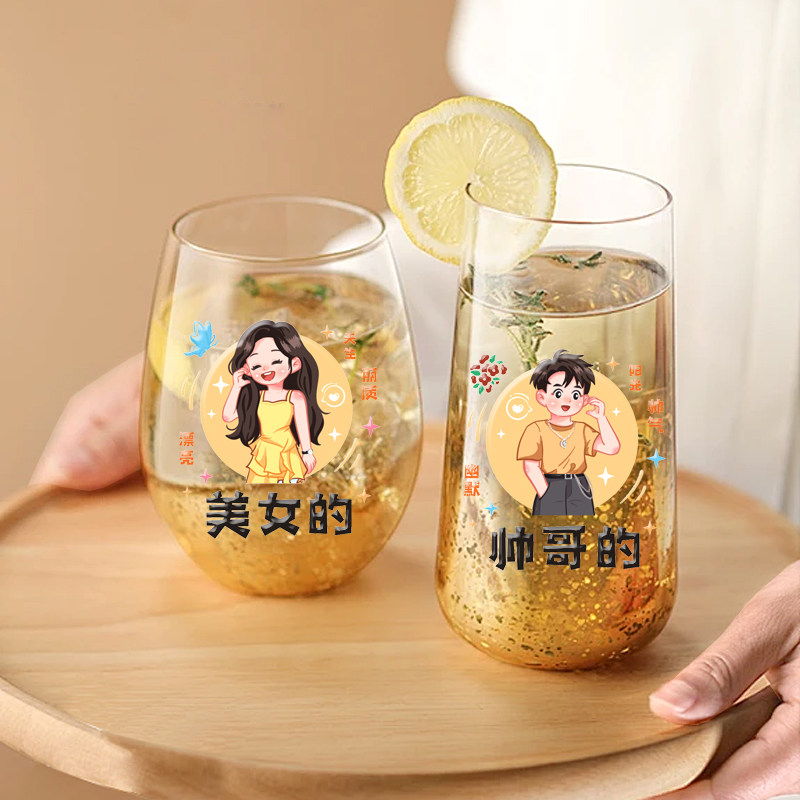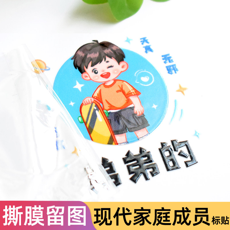 美女帅哥创意家庭用成员分类水晶贴UV转印贴纸一家三四口水杯贴画