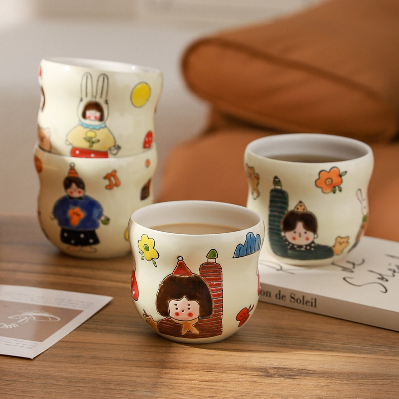 ins陶瓷杯高级感扭扭马克杯家用小众设计情侣咖啡杯女生喝水杯子