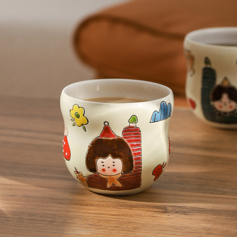 原创小众红苹果咖啡杯简约手绘陶瓷杯复古翻口马克杯水杯情侣礼物