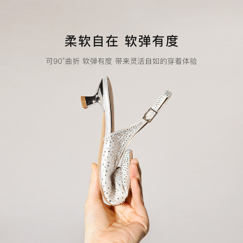 尖头交叉水钻高跟鞋25新款透明甜美一字带凉拖鞋细跟宴会仙女鞋