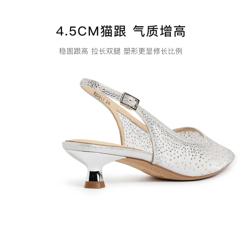 白月光尖头细跟高跟鞋女2026春夏新款白色网纱拼接丝绸包头凉鞋女