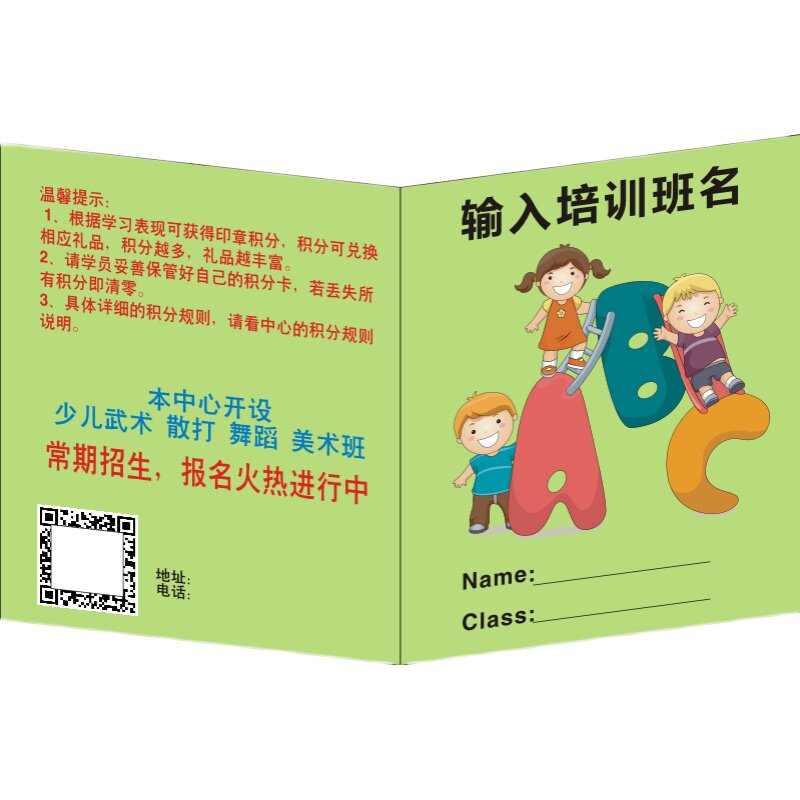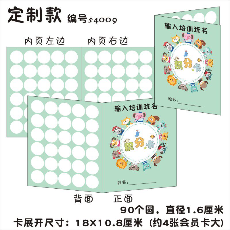 小学生儿童动物90格 积分卡奖励卡集章卡对折卡 艺术学校现货定制