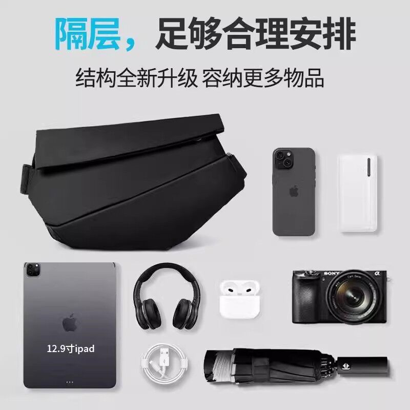 2025新款男士斜挎包防水运动单肩包休闲大容量胸包磁吸扣通勤时尚