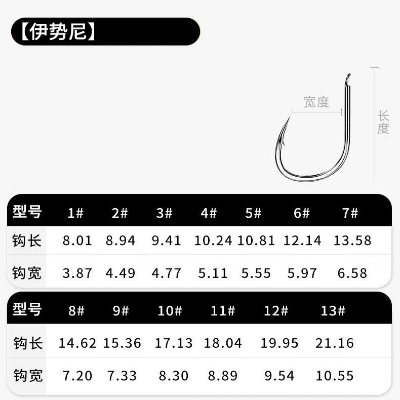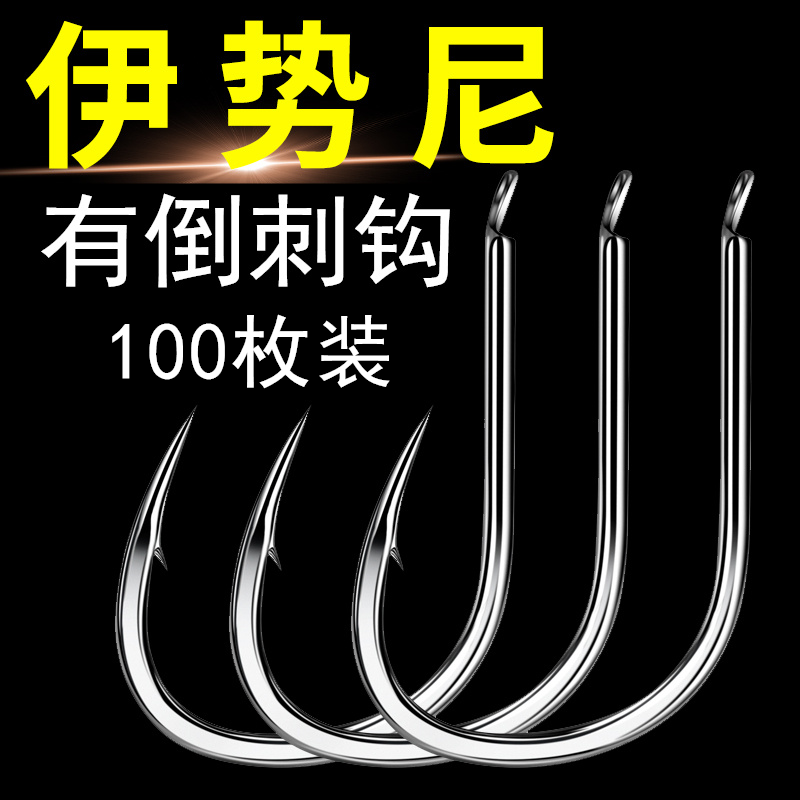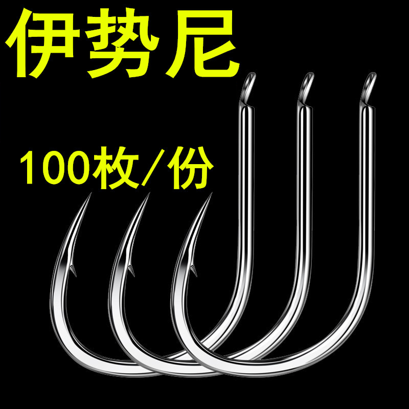 伊势尼散钩100枚高碳精钢鲤鱼草鱼青鱼鲢鳙有刺散装鱼钩大物钓具