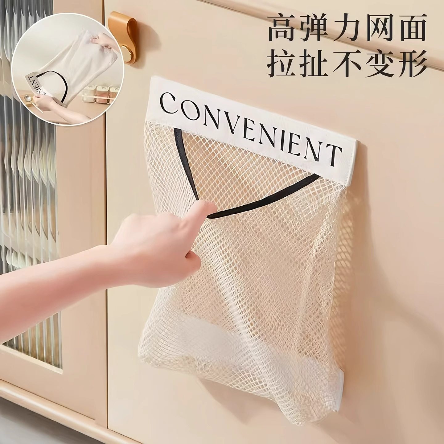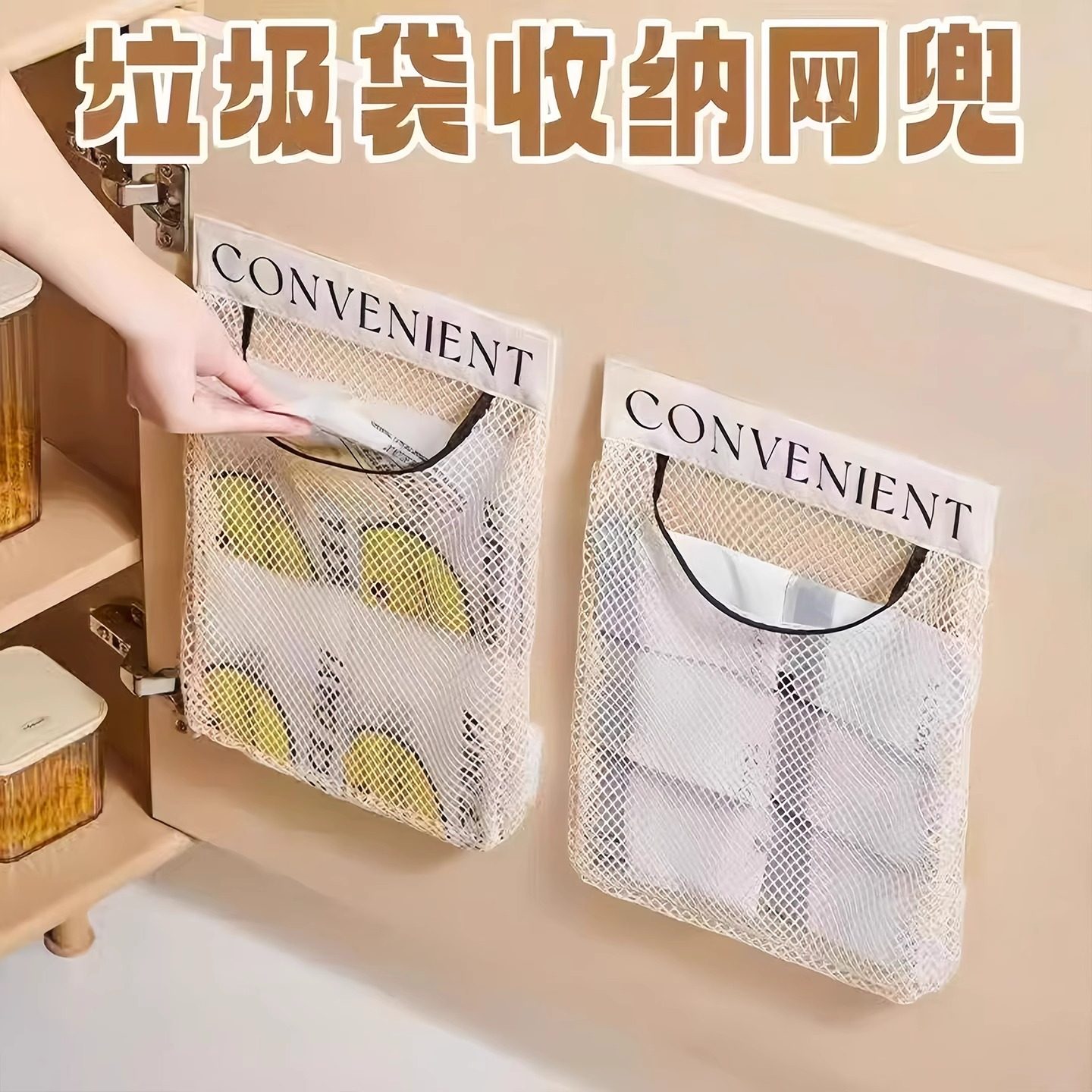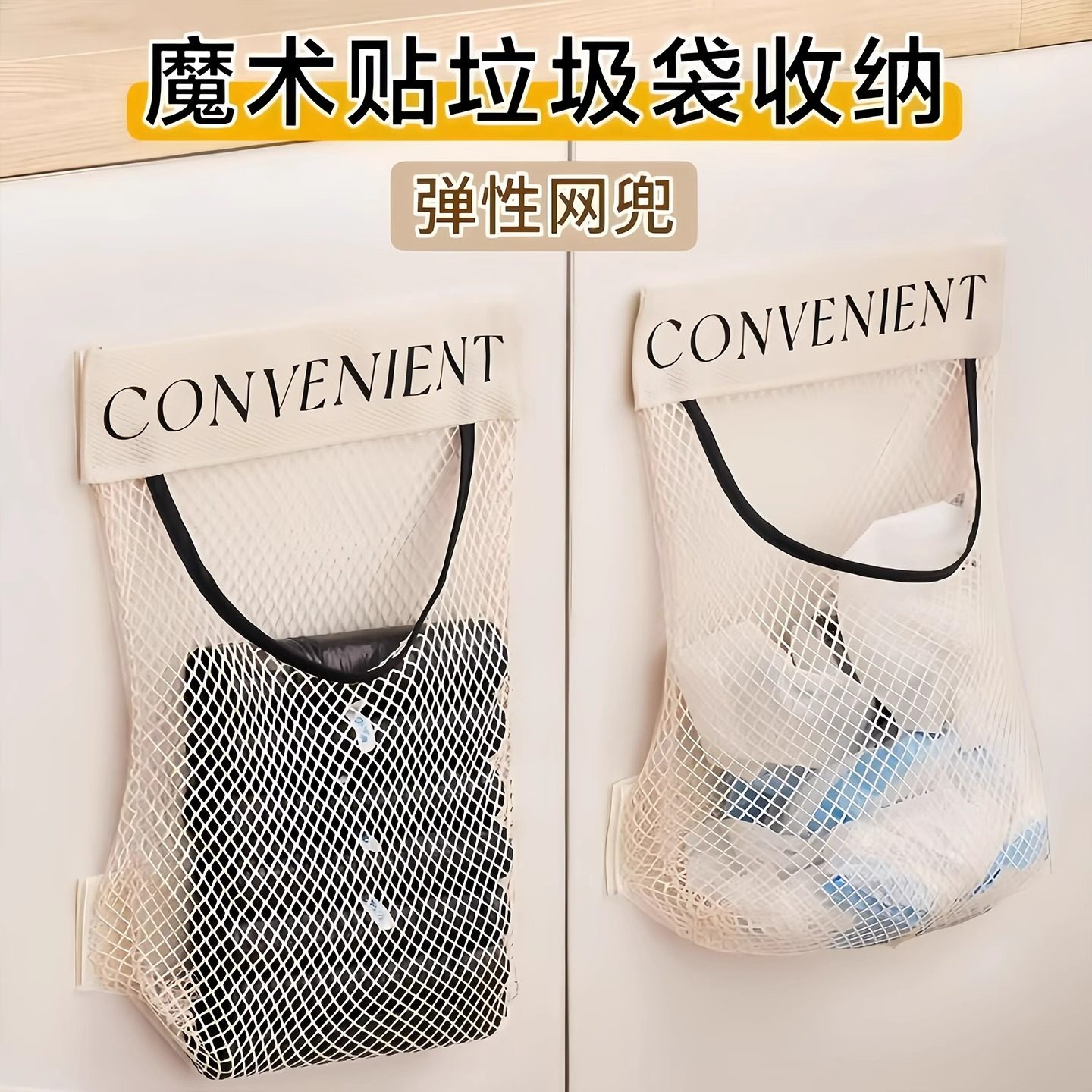 垃圾袋收纳神器厨房塑料袋魔术贴网兜墙壁挂式柜门装方便袋网袋子