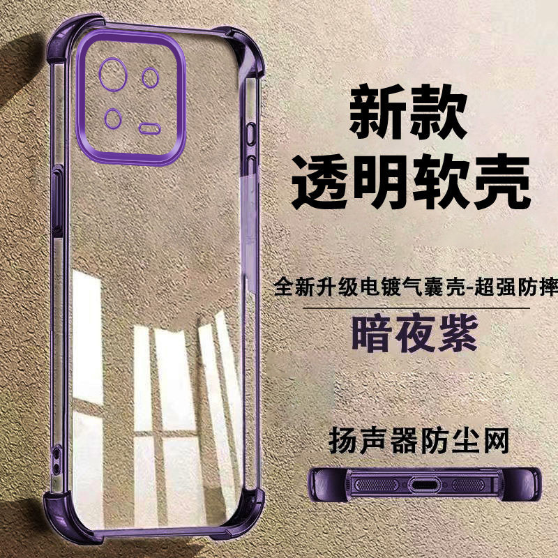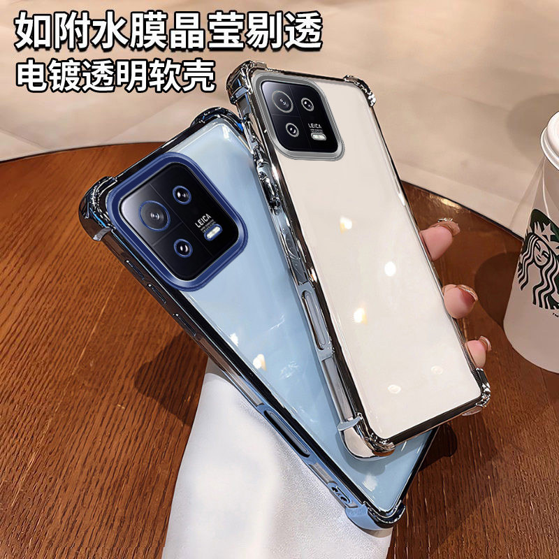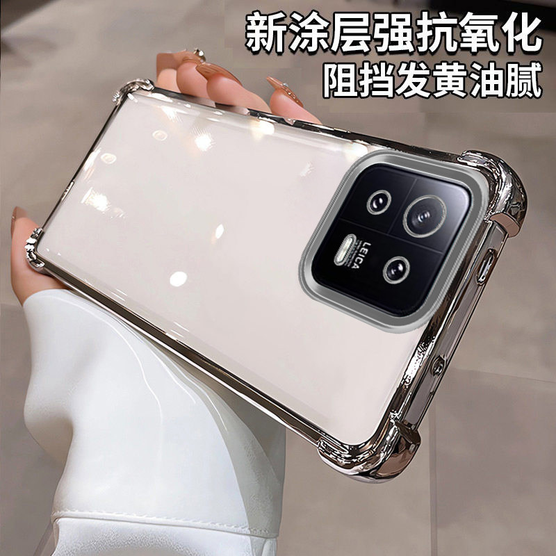 小米13手机壳新款四角气囊硅胶防摔时尚镜头全包软壳适用小米13pro高级感奢华强抗氧化简约款电镀透明手机壳