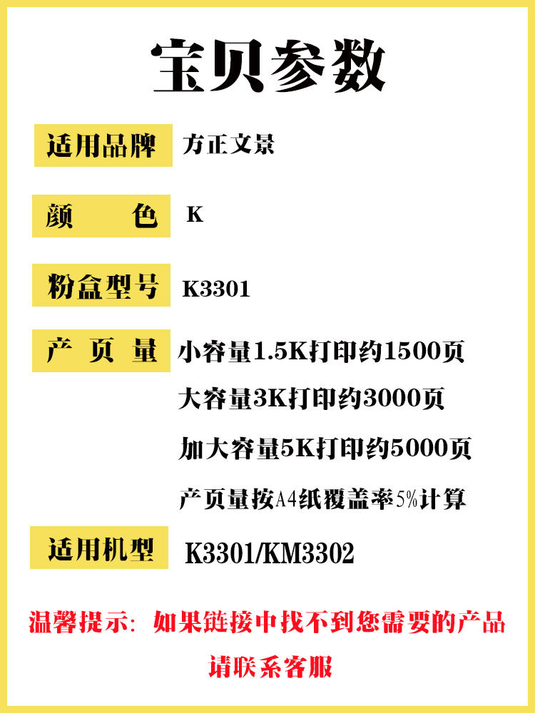 适用方正文景K3301粉盒K3301/KM3302打印机硒鼓K3301/FD-3302鼓架