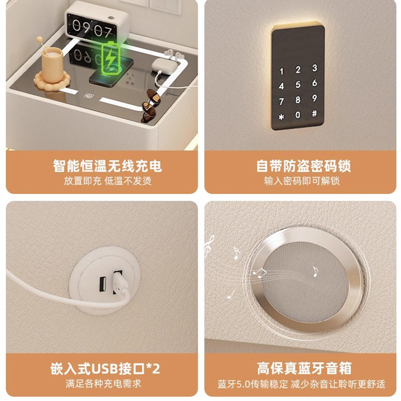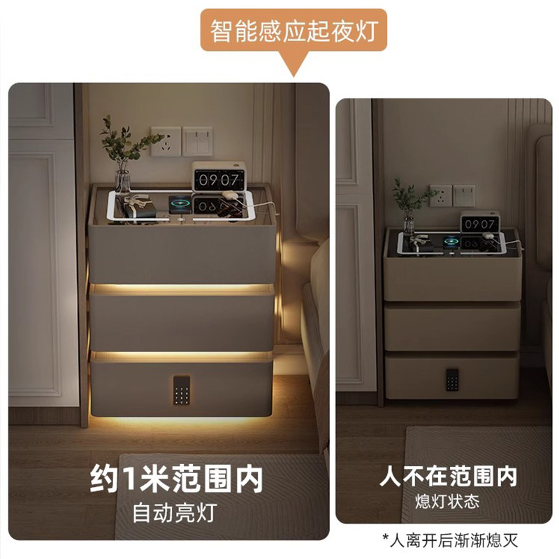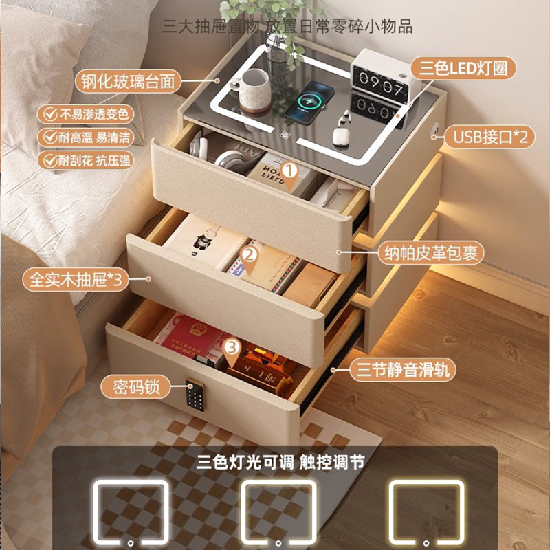 法式悬浮智能床头柜带灯一体收纳箱主卧高颜值白色三斗柜三层抽屉