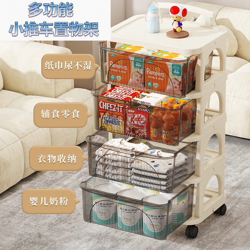 小推车置物架落地零食卫生间多层床头收纳储物架收纳柜移动多功能