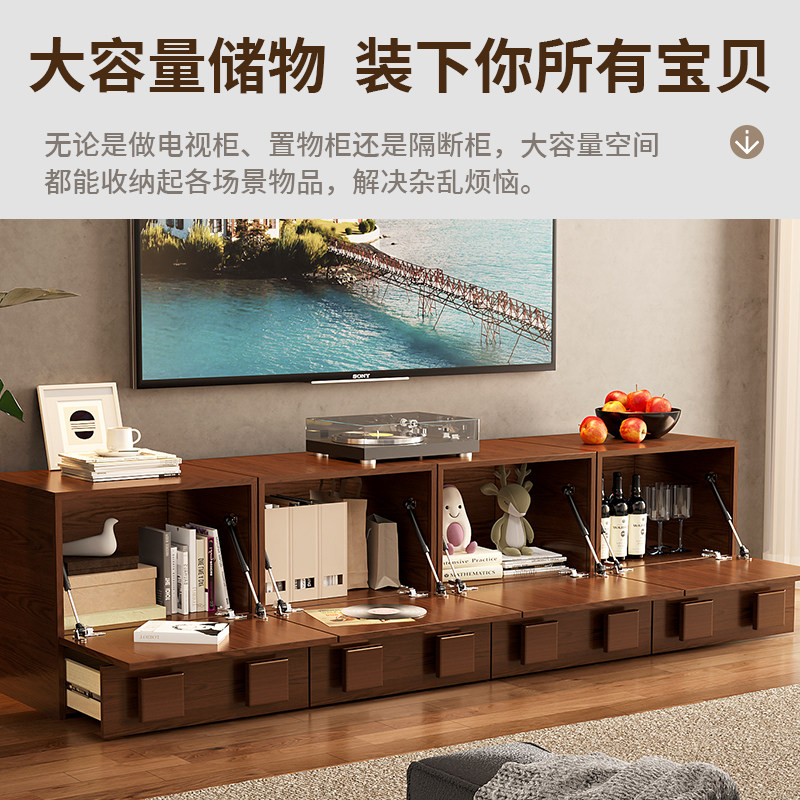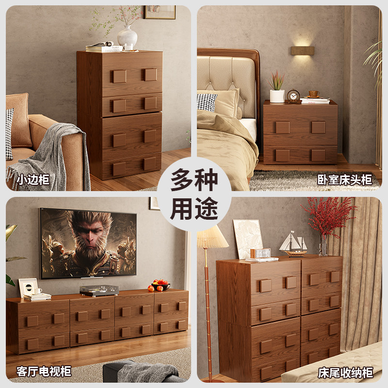 实木床头柜客厅家用落地复古卡门柜简约电视机边柜组合模块中古风