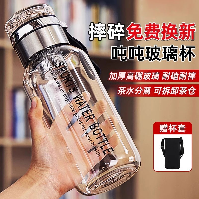 玻璃杯大容量1000ml高硼硅泡茶杯女办公室家用喝水杯子吸管杯新款