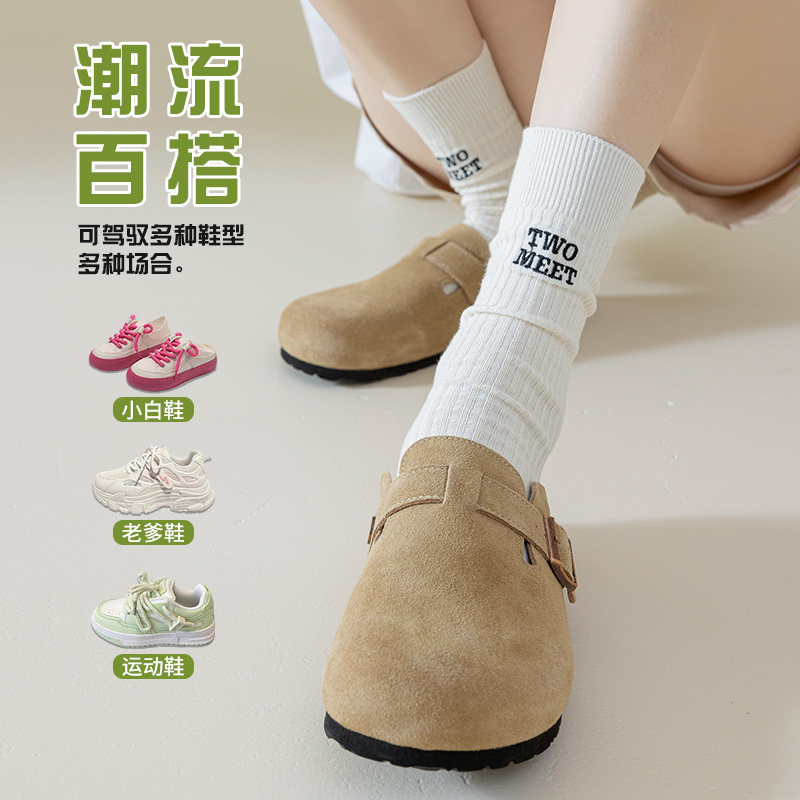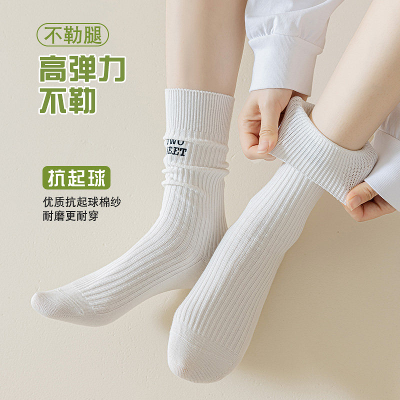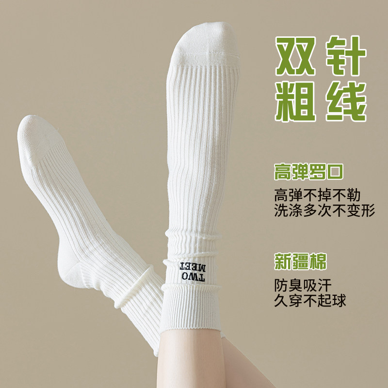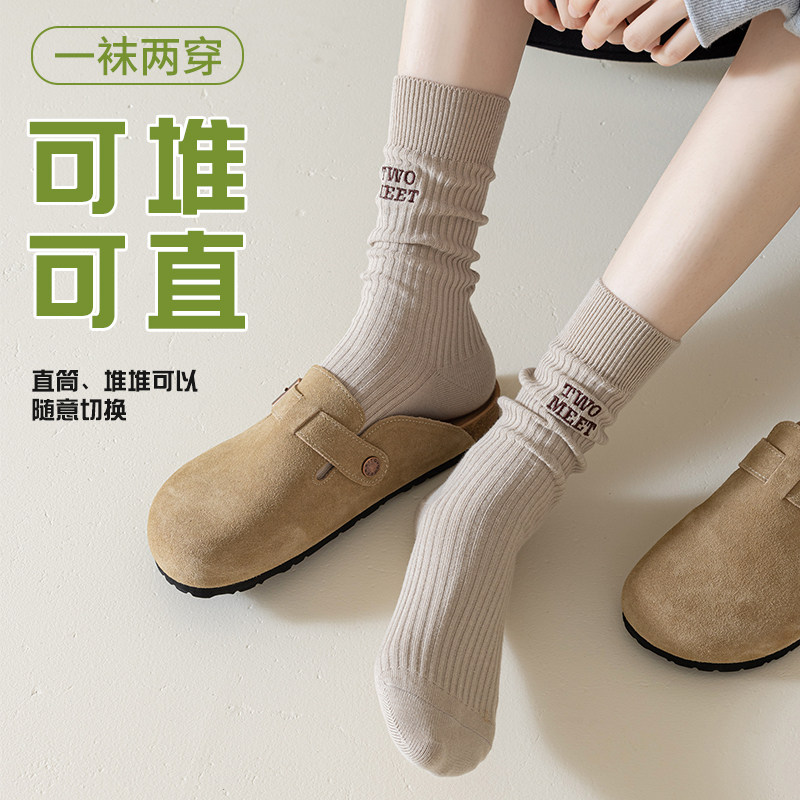 堆堆袜子女夏季薄款中筒袜纯棉吸汗女士夏天百搭勃肯鞋粗线长筒袜
