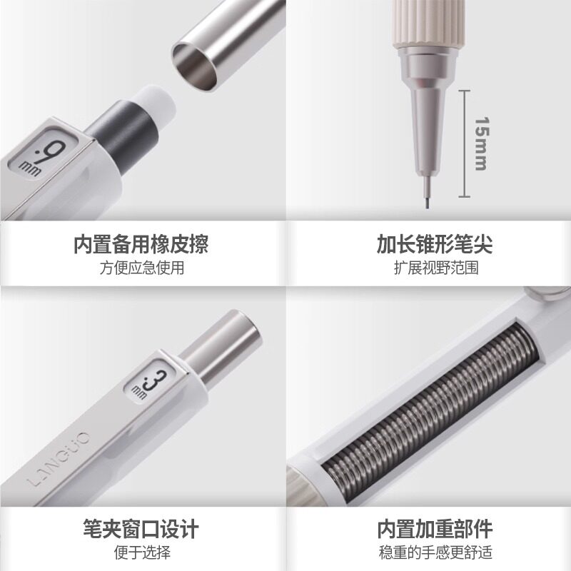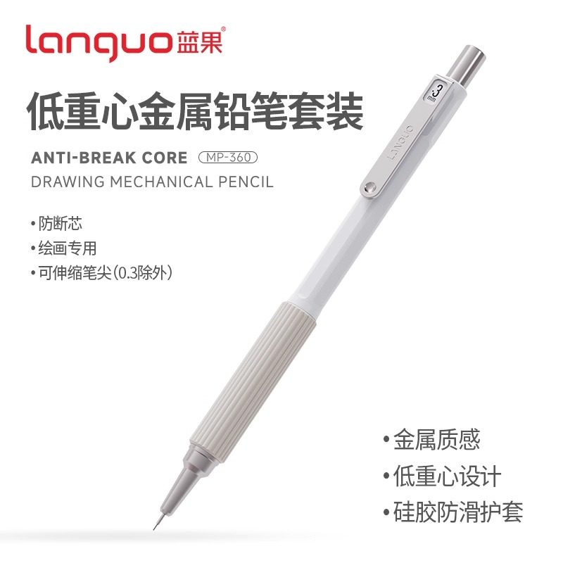 蓝果自动铅笔套装二代学生专用日常学习0.3/0.5/0.7/0.9mm绘画专用素描美术绘图软握金属低重心高颜值ins风