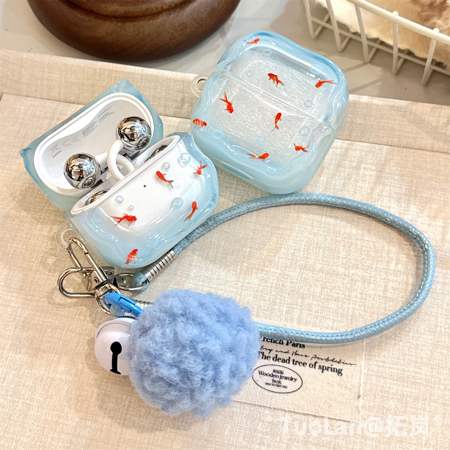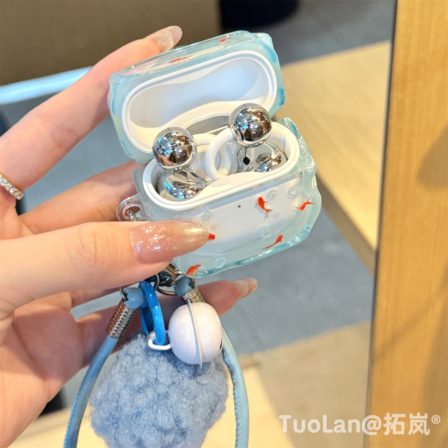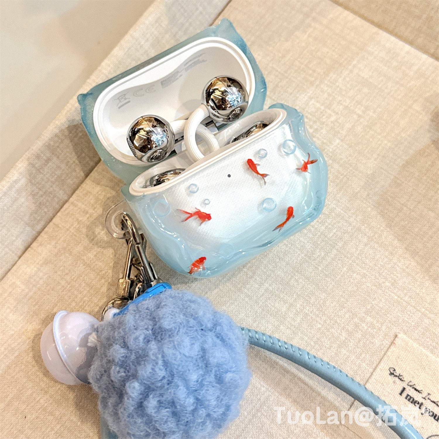 拓岚 适用华为freeclip2耳机保护壳渐变蓝海底ins气泡锦鲤FreeBuds6i/5i毛球挂绳freebudsSE3/se2防摔套网红