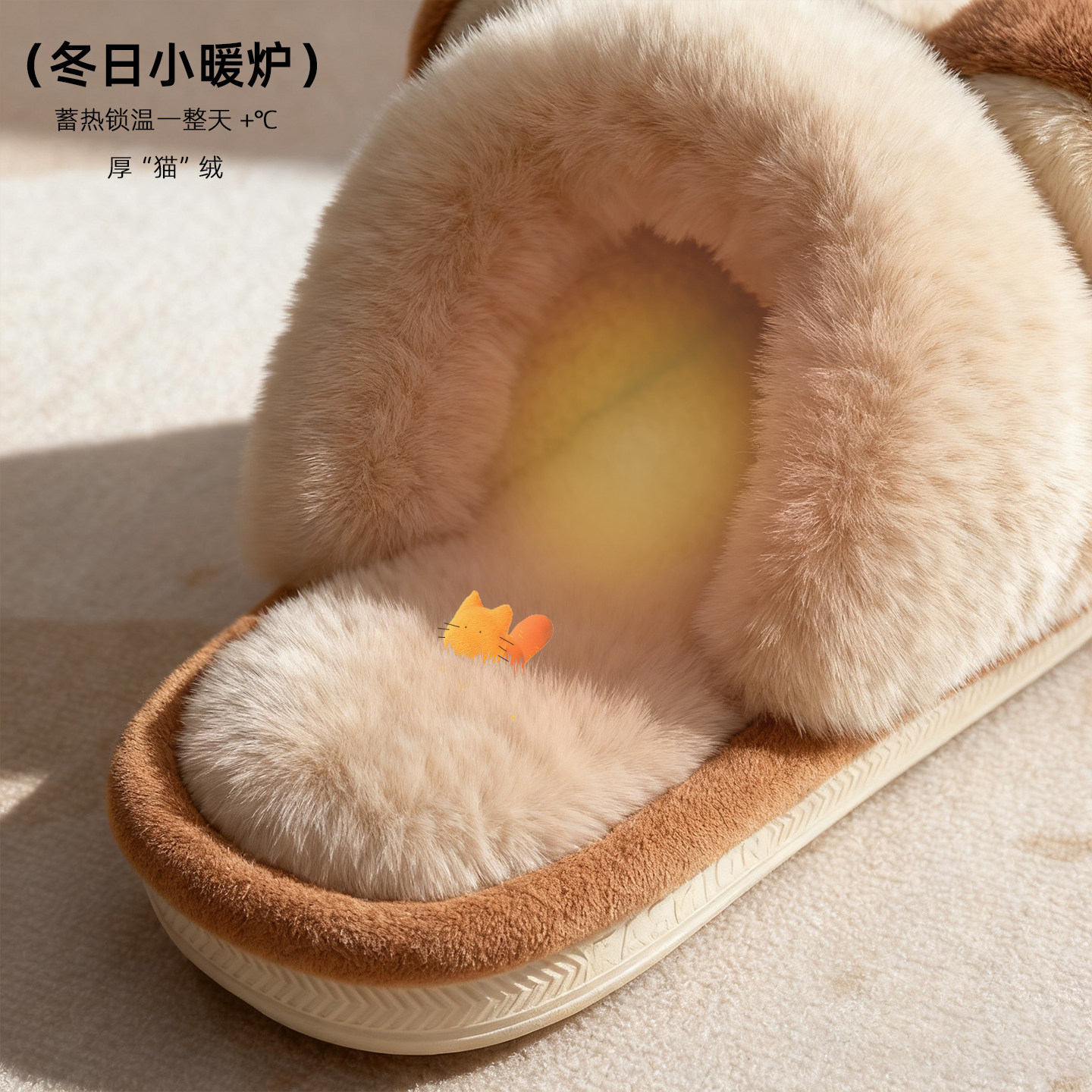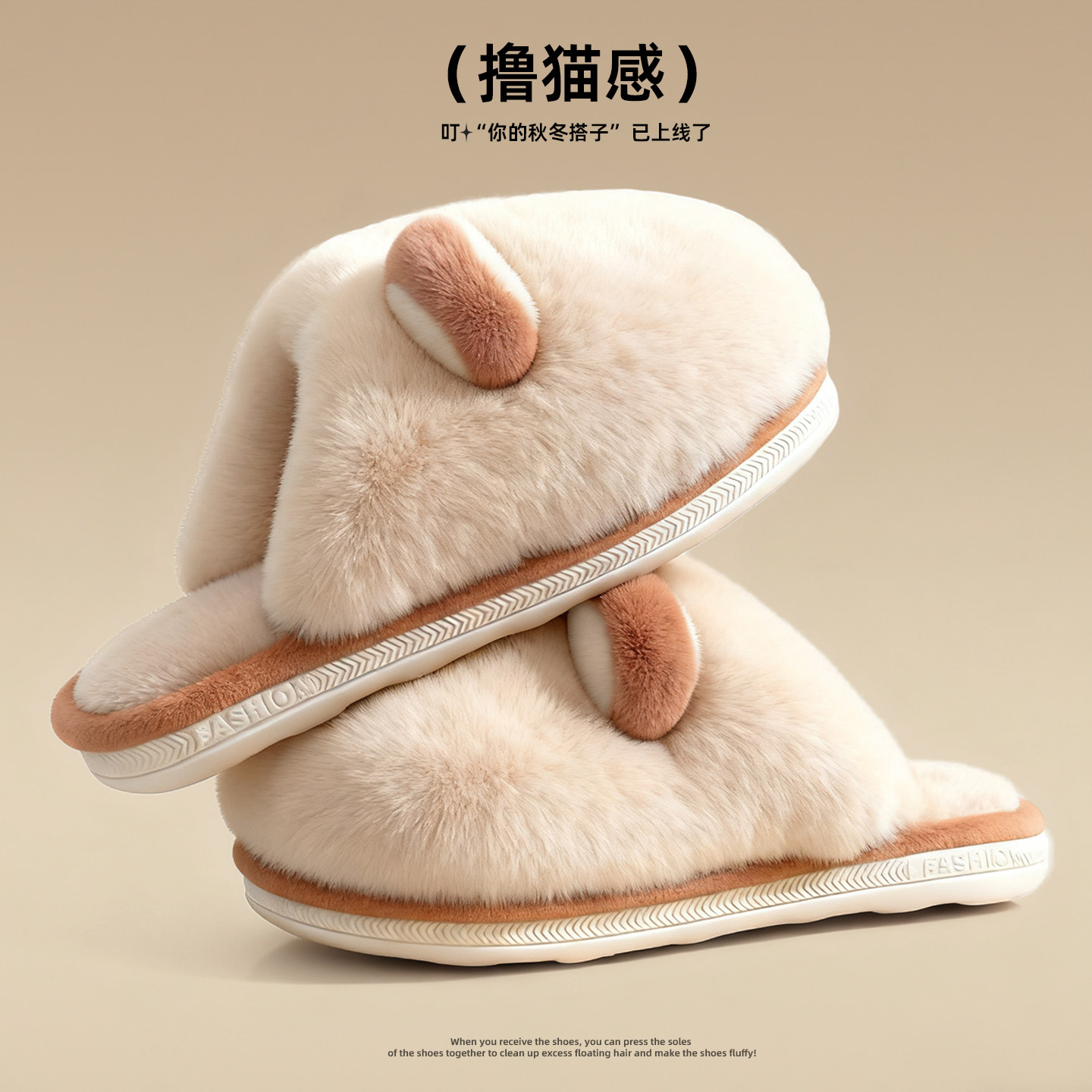 棉拖鞋女款秋冬季2025新款室内家居防滑可爱加绒毛毛拖鞋女士冬天