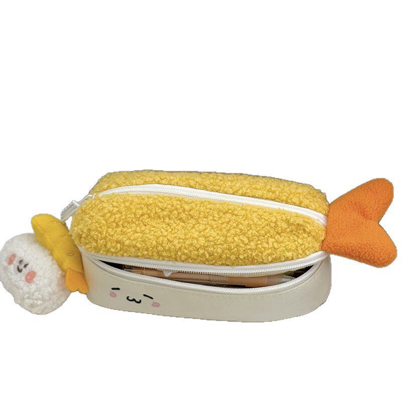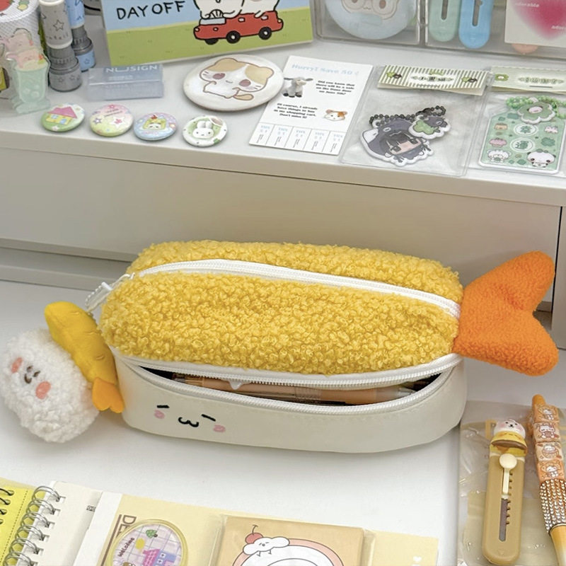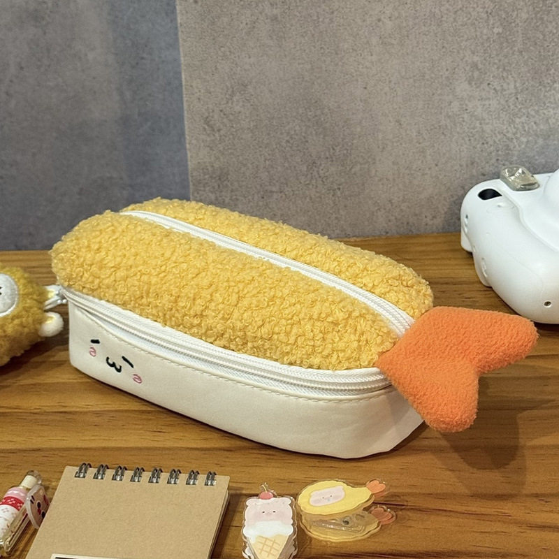 炸虾笔袋三文鱼可爱卡通文具新款高颜值毛绒大容量收纳袋收纳包女
