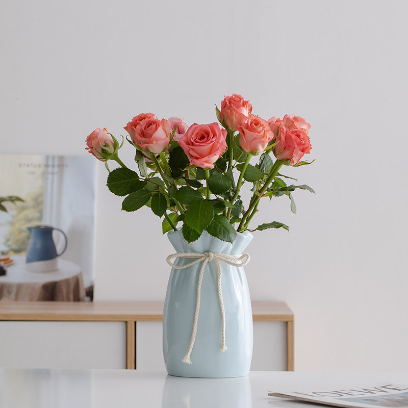北欧创意福袋陶瓷花瓶装饰干花粉色桌面客厅现代插花摆件水培花器