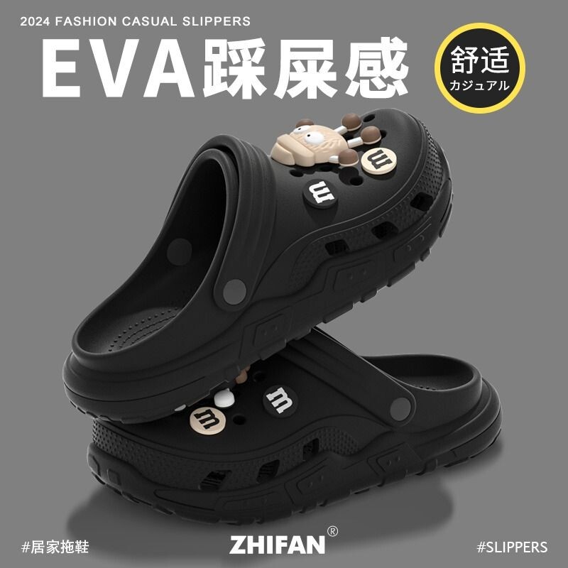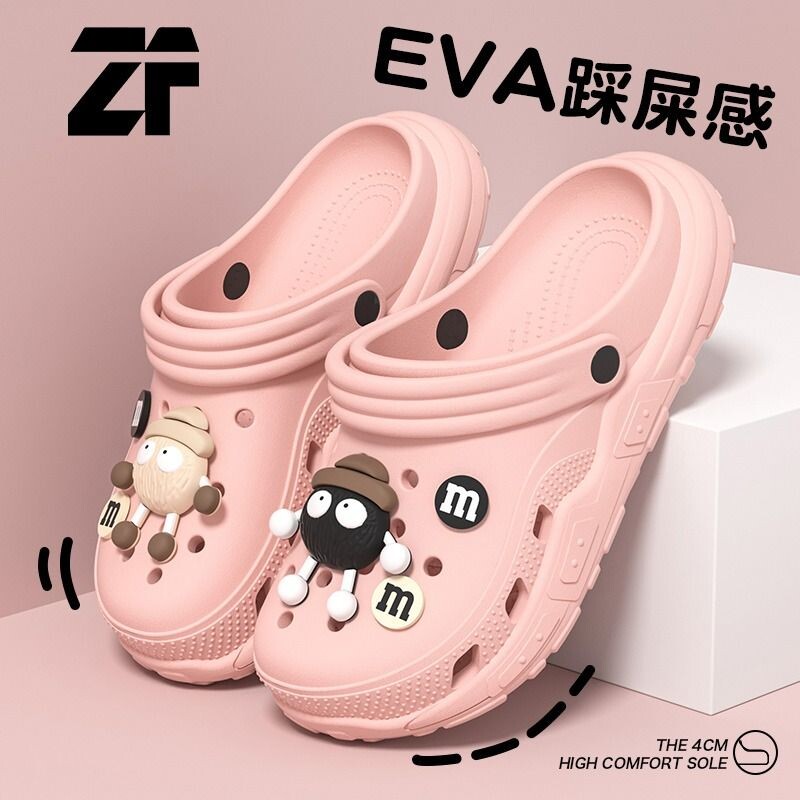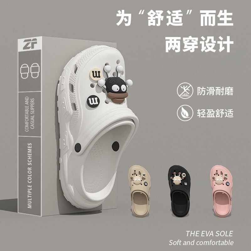 防滑煤球洞洞鞋女卡通2025新款外穿旅行夏季厚底踩屎感两穿凉鞋女