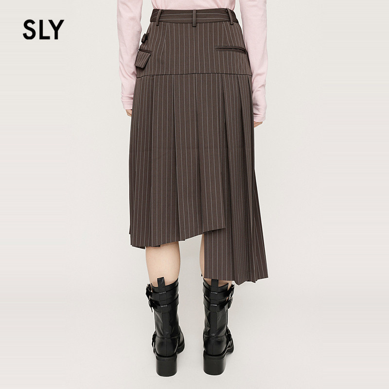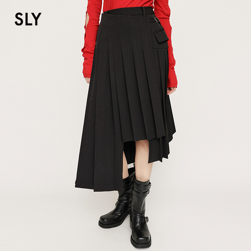 SLY 春季通勤风不规则百褶裙不对称半身裙030ISZ31-1061
