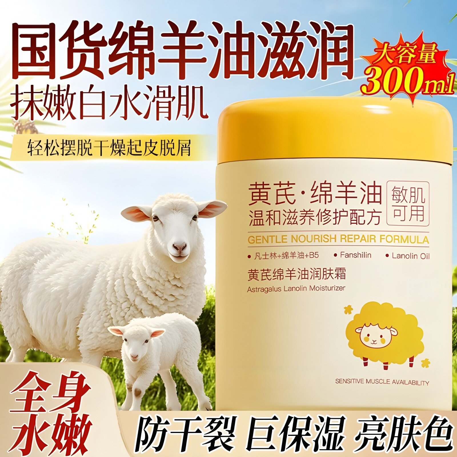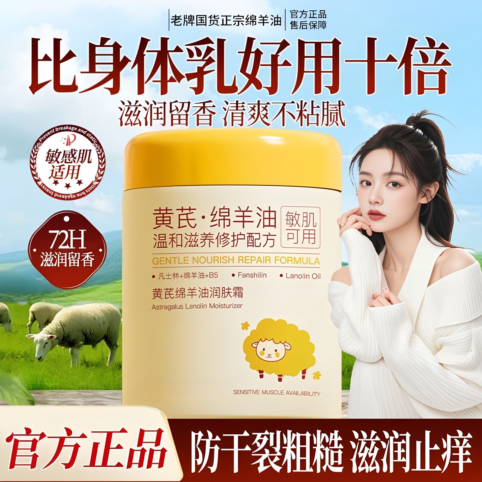 黄芪绵羊油润肤霜滋润补水保湿秋冬可用防干裂大人小孩国货老牌