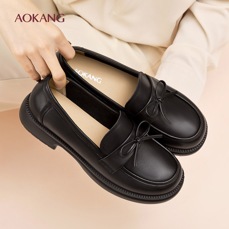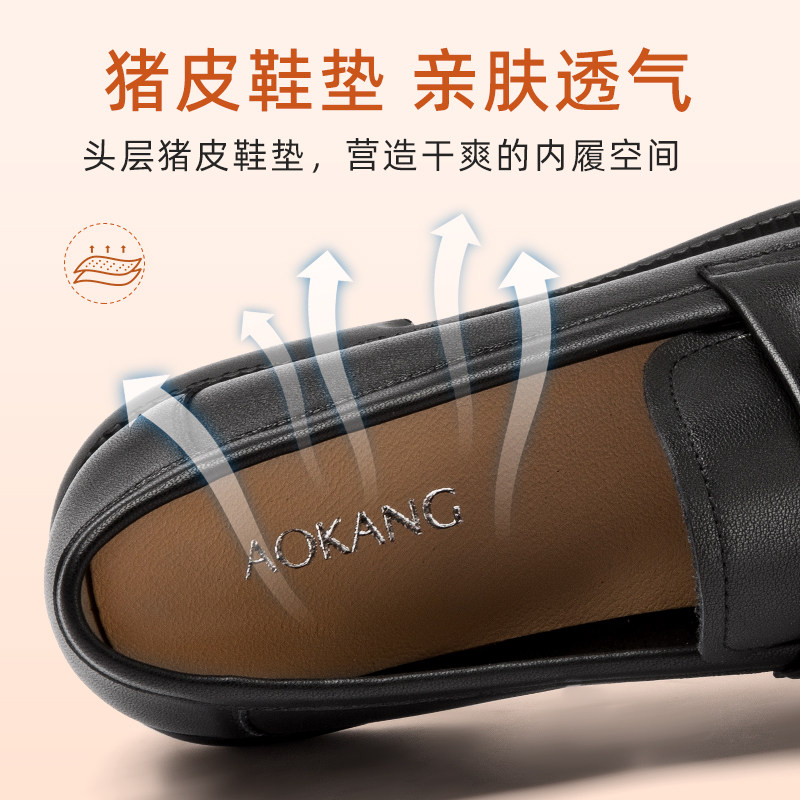 奥康 女鞋2026春季新款真皮舒适乐福鞋系带浅口单鞋透气妈妈鞋N