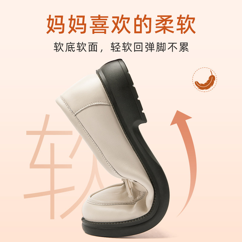 日泰头层牛皮女单鞋秋季厚底小皮鞋百搭通勤鞋妈妈软底真皮乐福鞋