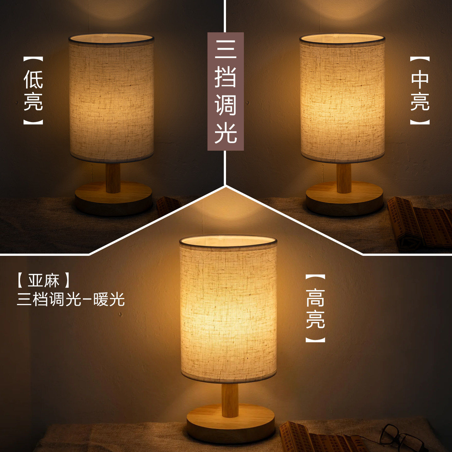 台灯简约现代ins少女暖光卧室床头木装饰小夜灯茶室客厅手工睡眠
