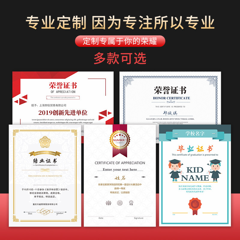 荣誉证书制作定做可打印培训获奖幼儿园结业结营优秀员工比赛奖状毕业授权聘书内芯内页钢琴英语武术批发