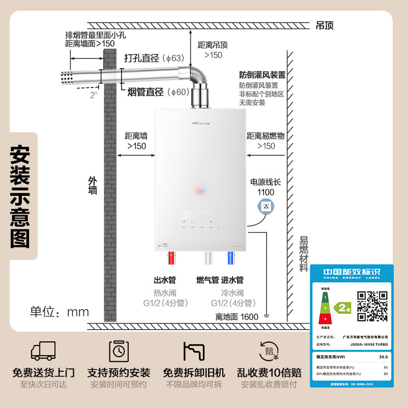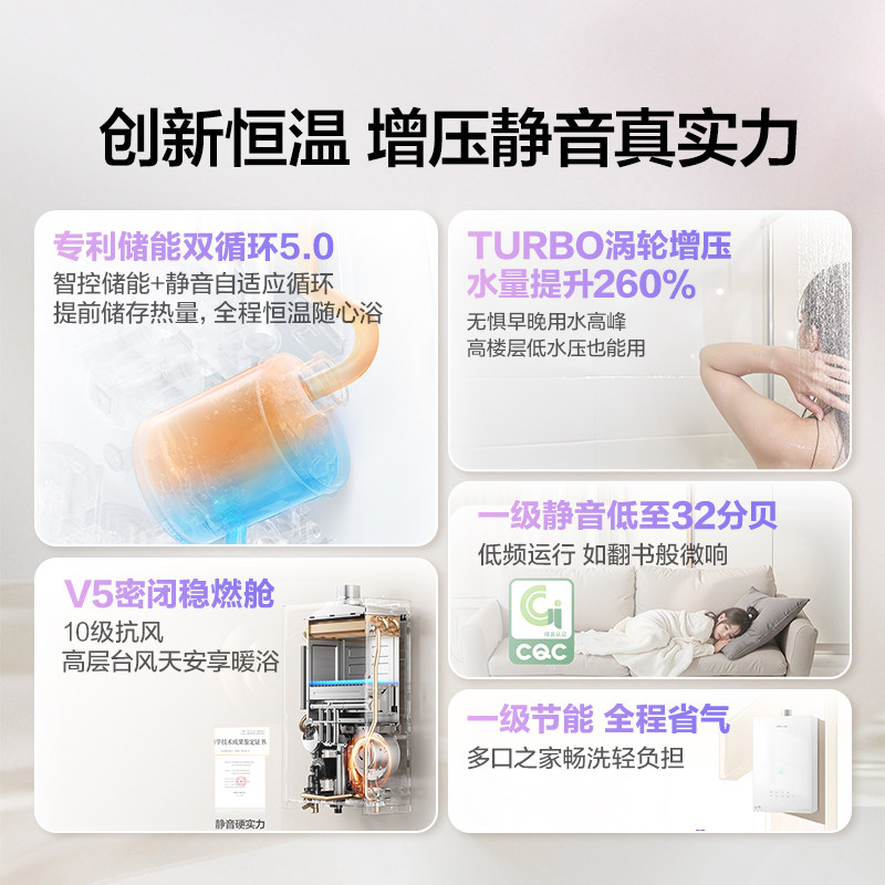 万和爆款安睡洗家用一级节能静音暖浴恒温16天燃气热水器V9STurbo