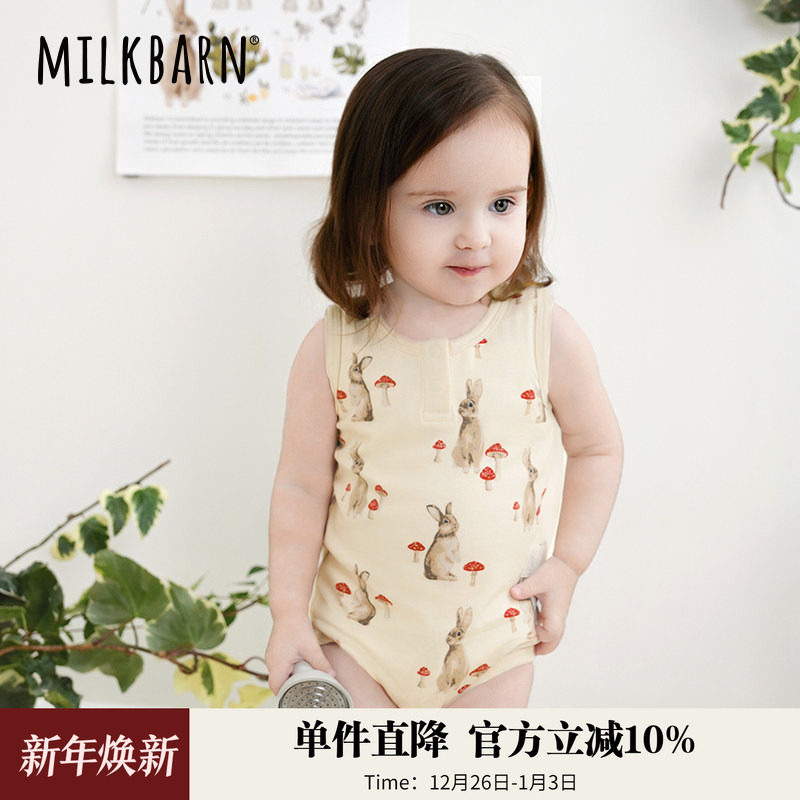 Milkbarn2025春夏新品新生儿包屁衣背心哈衣婴儿衣服宝宝外出爬服