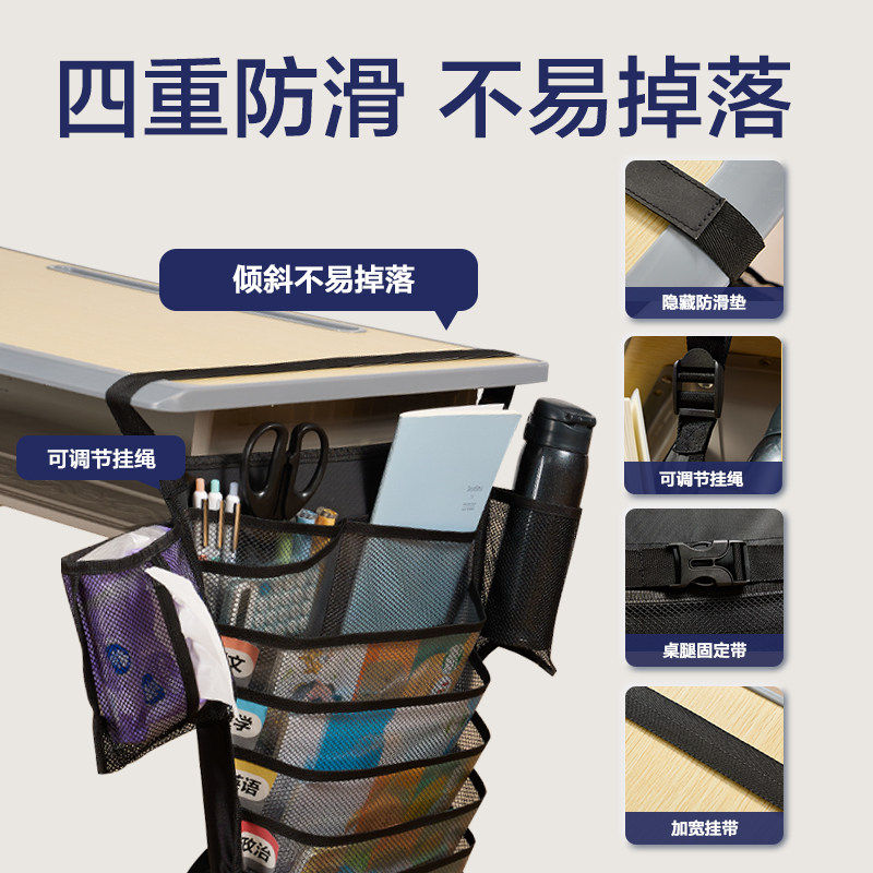 得力透明防水大容量挂书袋加厚防滑学生挂桌侧收纳袋牛津布书袋挂袋课桌桌面收纳袋高中生初中生书袋课桌收纳