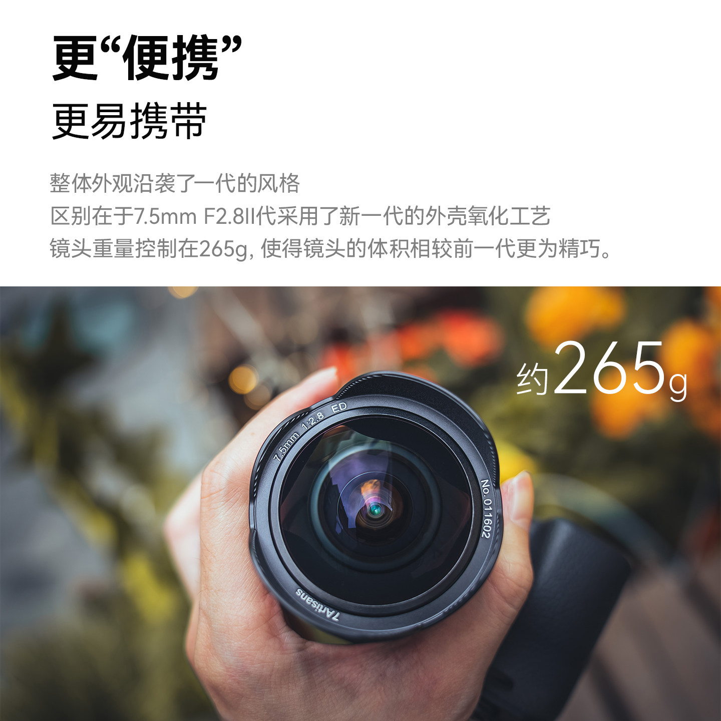 七工匠7.5mmF2.8超广角鱼眼镜头适用索尼E富士XM5佳能R50尼康Zm43