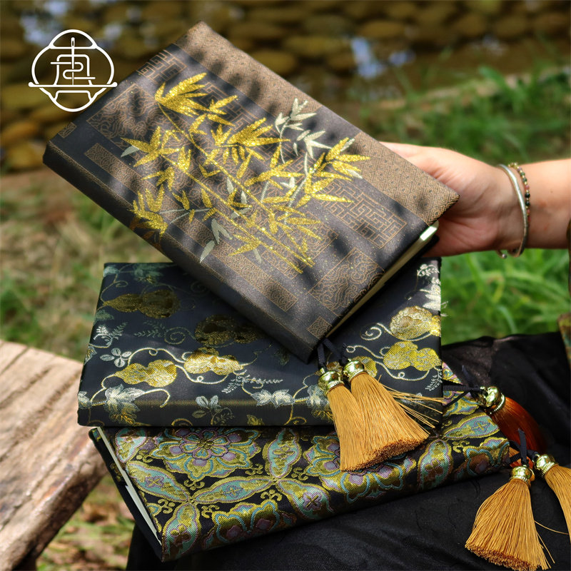 真我 墨隐金 国风织金织锦缎手账本手帐手工布书衣日记笔记本a5a6