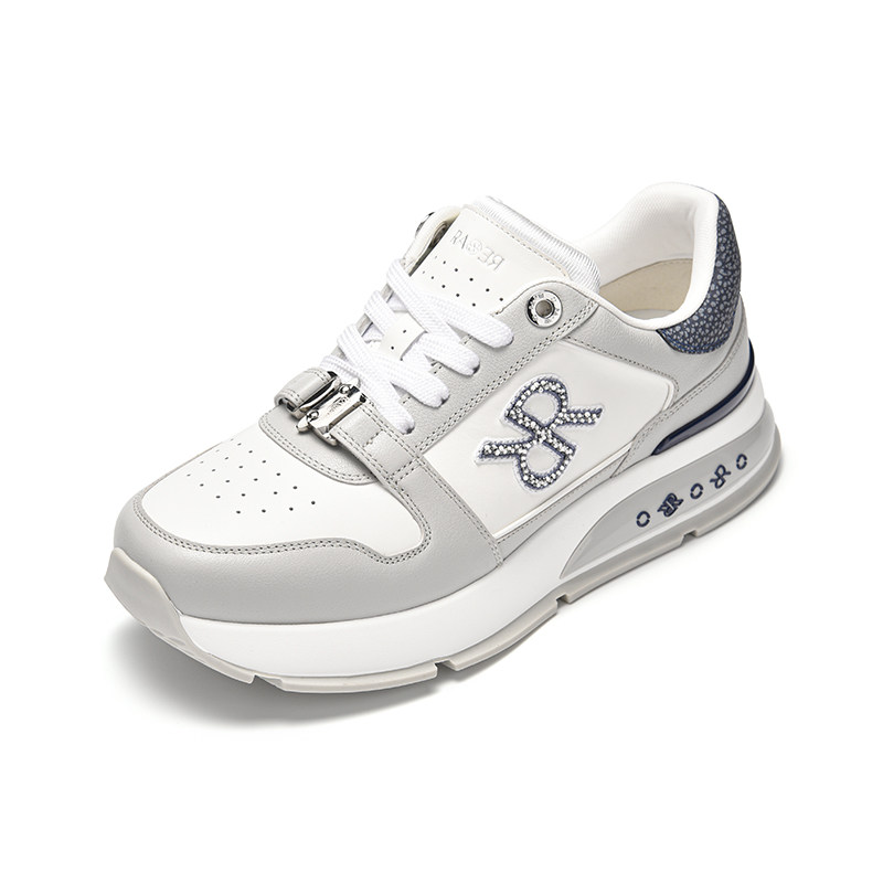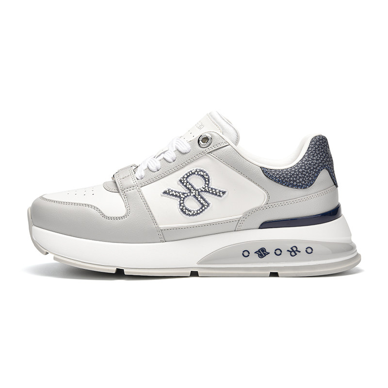 RARE威雅男鞋2026春夏新款logo刺绣灰白拼色牛皮革鞋子运动休闲鞋