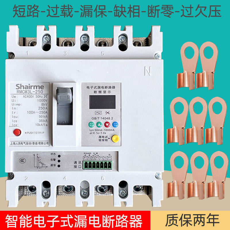 上海人民三相四线智能式缺相断零漏电断路器过欠压过载保护器塑壳