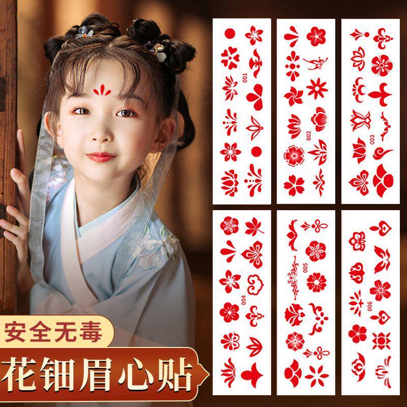 儿童眉心贴汉服花钿额贴古风女童古装额头印花纹身宝宝额头贴纸片
