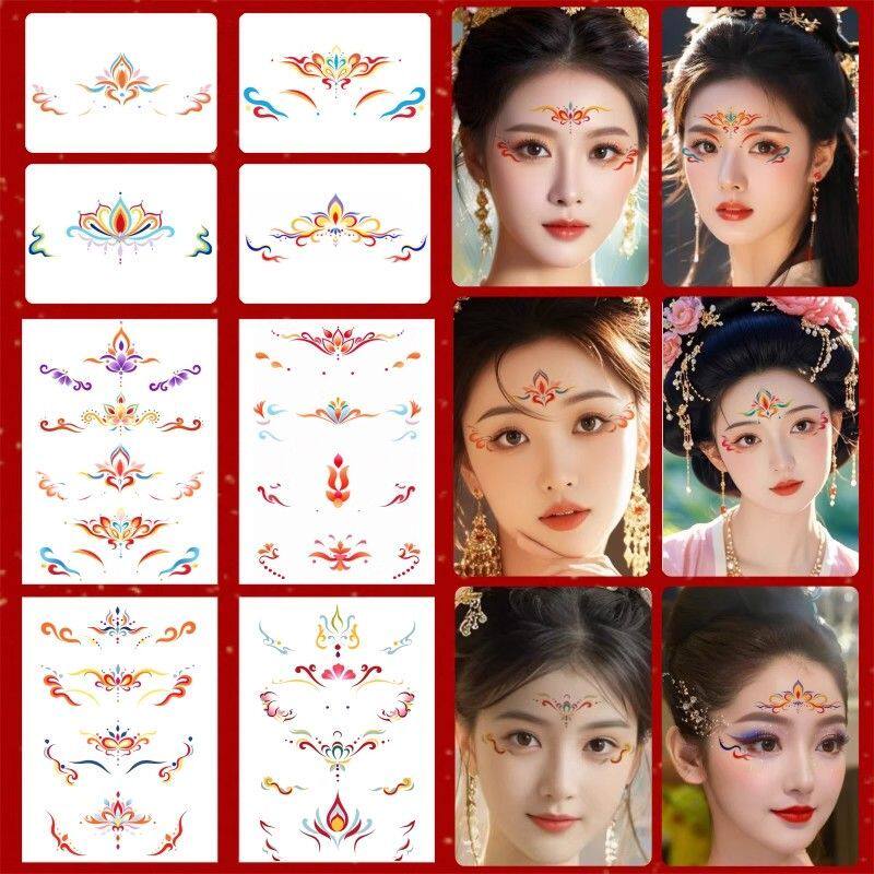 敦煌飞天眉心贴纸面部彩绘化妆饰品配饰儿童女舞台古国风汉服额头眉心贴汉服花钿额贴古风女童额头印花纹身