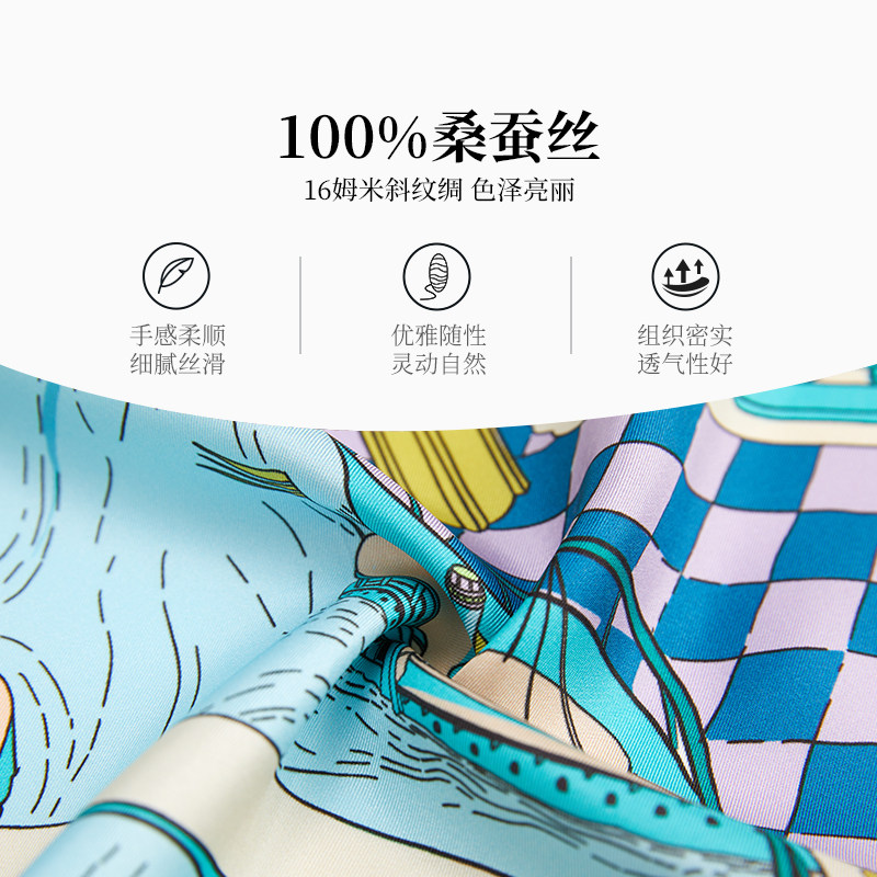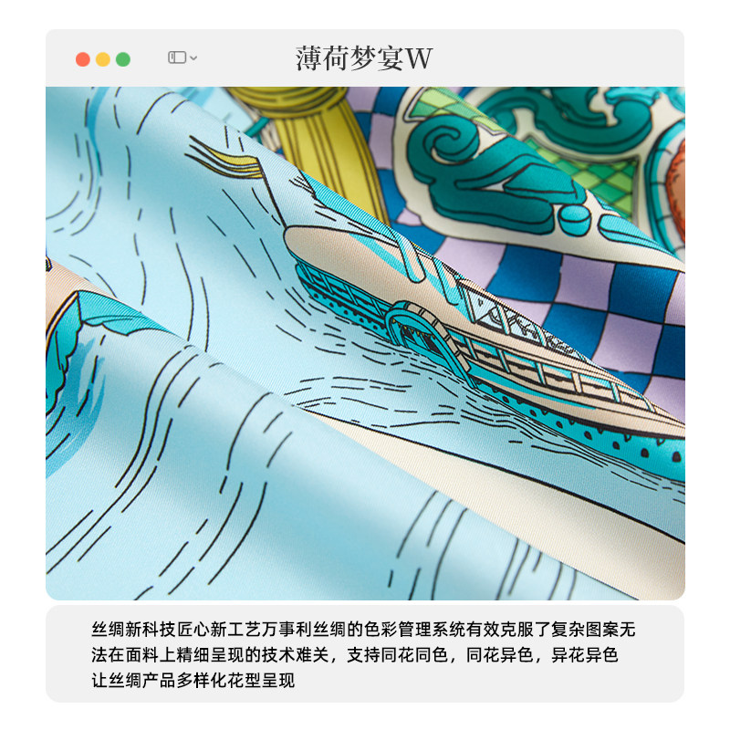 【印象巴黎系列】万事利100%桑蚕丝丝巾领巾女真丝大方巾薄荷梦宴