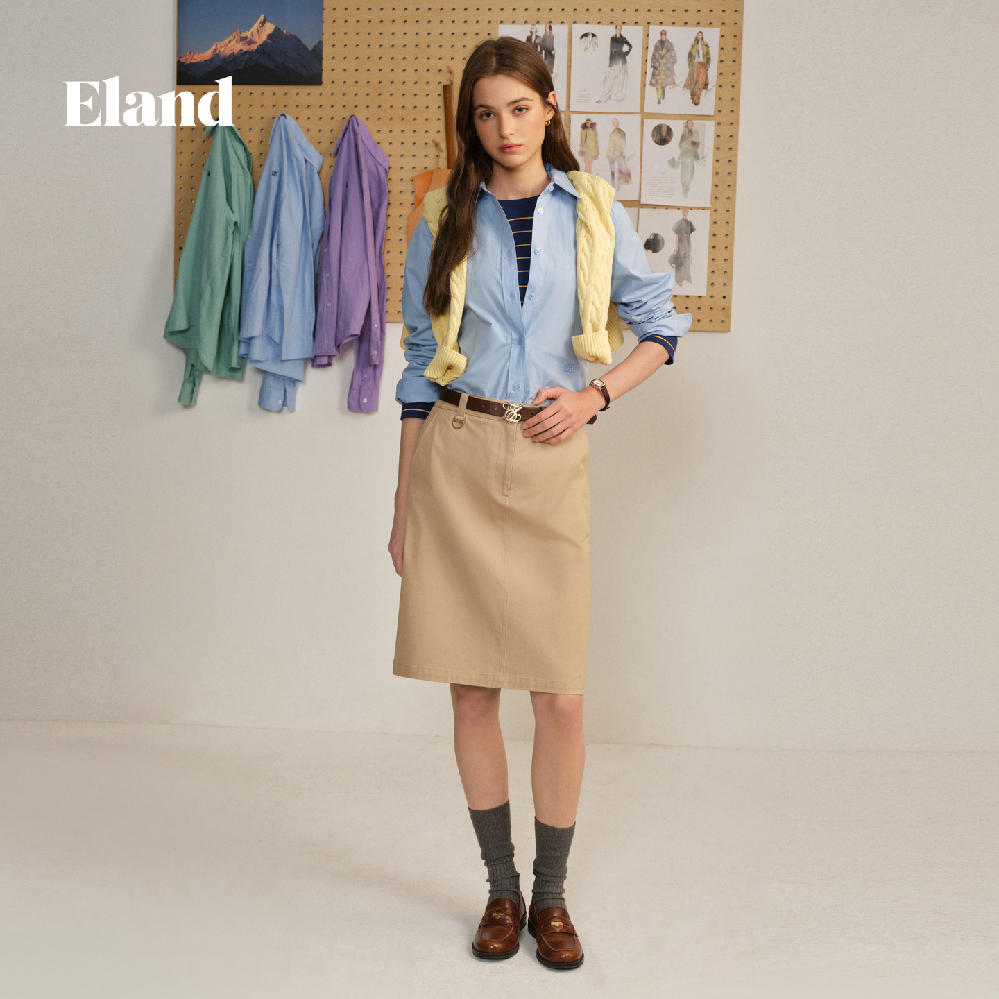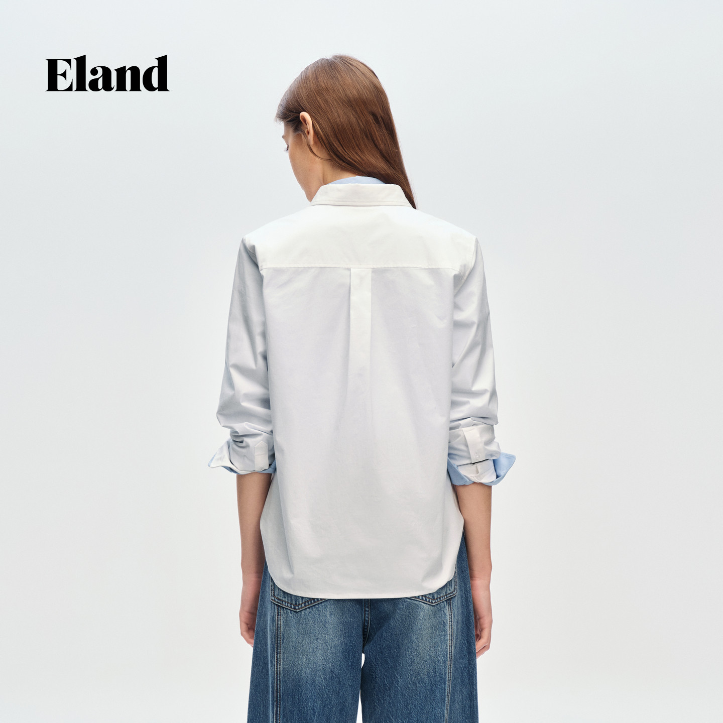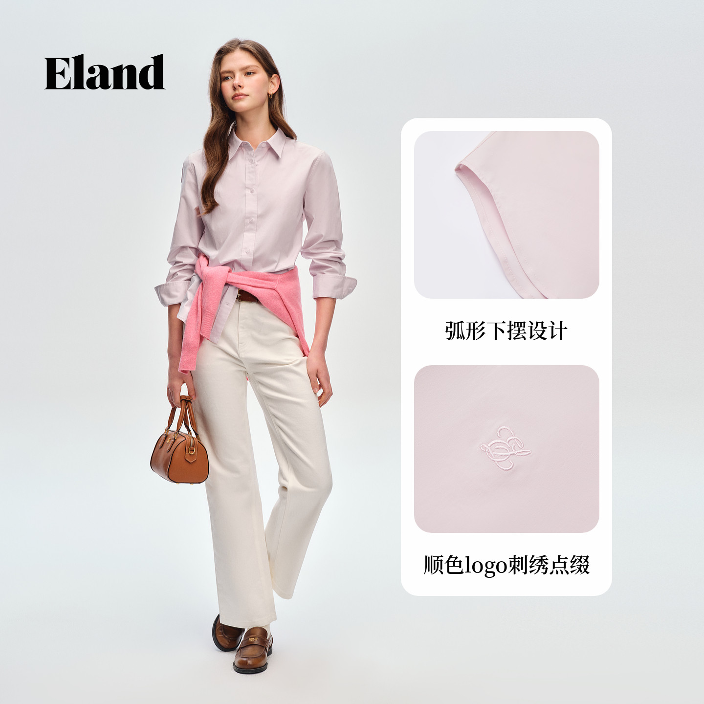 Eland衣恋衬衫女纯色棉质弧形下摆翻领上衣2026春季新款
